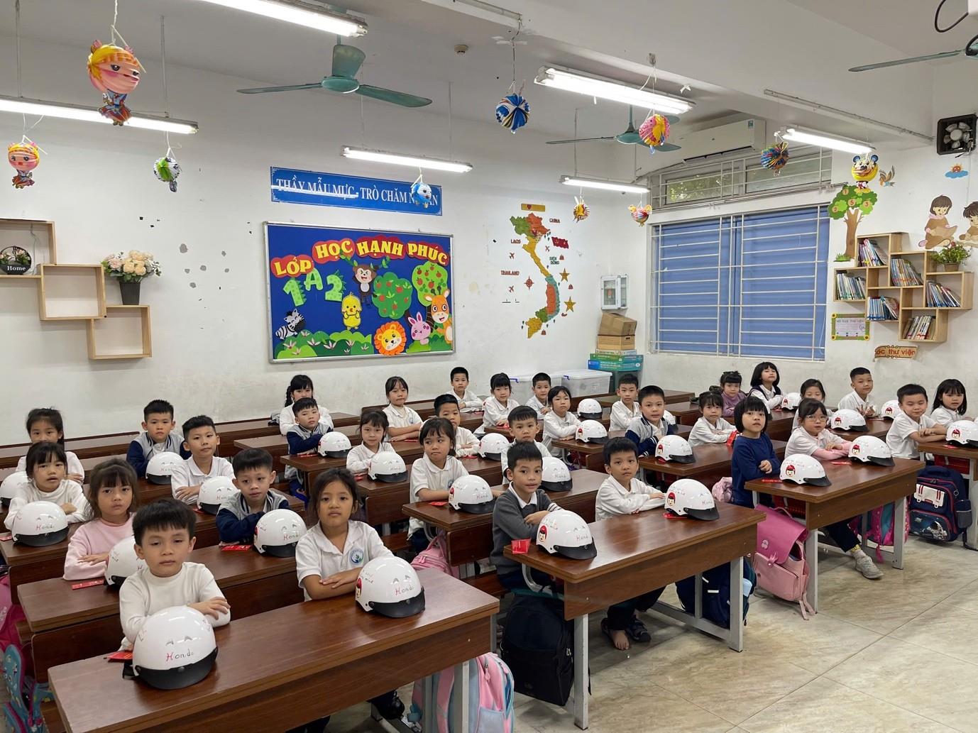 Học sinh lớp 1A2 được trao tặng mũ bảo hiểm – Món quà đầy ý nghĩa.