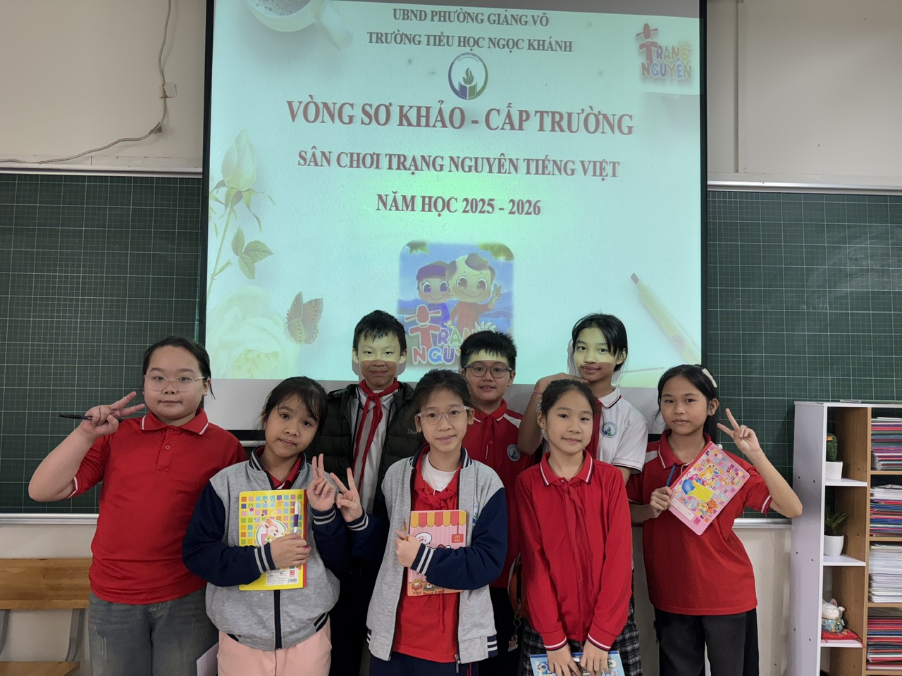 Sáng ngày 10/12/2025, cuộc thi Trạng Nguyên Tiếng Việt cấp trường đã diễn ra tại trường Tiểu học Ngọc Khánh. Đây là cuộc thi nhằm góp phần giúp học sinh Tiểu học rèn luyện phát triển ngôn ngữ, hiểu rõ lịch sử, văn hóa để thêm yêu quê hương, đất nước, trân trọng và giữ gìn Tiếng Việt. Cuộc thi đã thu hút được nhiều học sinh tham gia. Đến với đấu trường Trạng Nguyên Tiếng Việt năm nay, các em học sinh 5A4 đã sẵn sàng chinh phục các câu hỏi đa dạng với chủ đề gắn với chương trình học của từng khối lớp. Cuộc thi đã đưa đến cho các em học sinh một cách tiếp cận kiến thức Tiếng Việt vừa gần gũi, vừa thân quen nhưng đầy bất ngờ. Các em bước vào phòng thi với tâm lí hết sức thoải mái, tràn đầy tự tin.