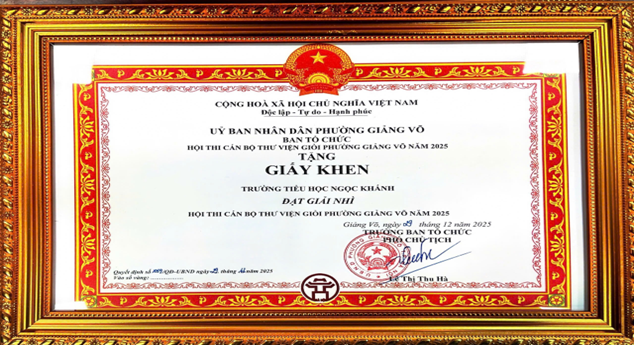 Hội thi là sân chơi chuyên môn bổ ích, góp phần khẳng định vai trò quan trọng của thư viện trường học trong việc xây dựng văn hóa đọc, hỗ trợ đổi mới phương pháp dạy và học, đáp ứng yêu cầu giáo dục trong giai đoạn hiện nay. Tham gia hội thi là các cán bộ thư viện tiêu biểu đến từ các trường học trên địa bàn phường Giảng Võ, cô Đoàn Thị Thêm – nhân viên thư viện Trường Tiểu học Ngọc Khánh với sự chuẩn bị nghiêm túc và tinh thần trách nhiệm cao, cô đã đạt Giải Nhì của hội thi. Thành tích này không chỉ là sự ghi nhận cho nỗ lực cá nhân của cô mà còn là niềm tự hào của Trường Tiểu học Ngọc Khánh, góp phần khẳng định chất lượng đội ngũ cán bộ, nhân viên nhà trường. Đồng thời, kết quả đạt được cũng là nguồn động viên to lớn để đội ngũ cán bộ Thư viện tiếp tục cống hiến, đổi mới và lan tỏa niềm đam mê đọc sách tới học sinh.