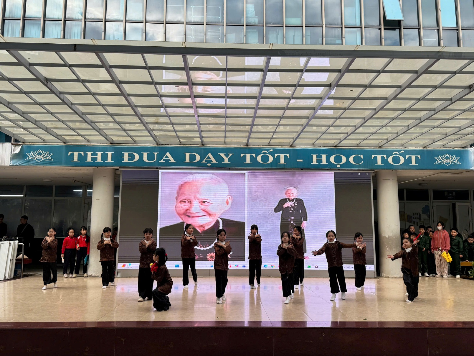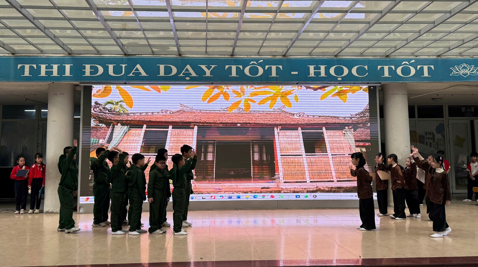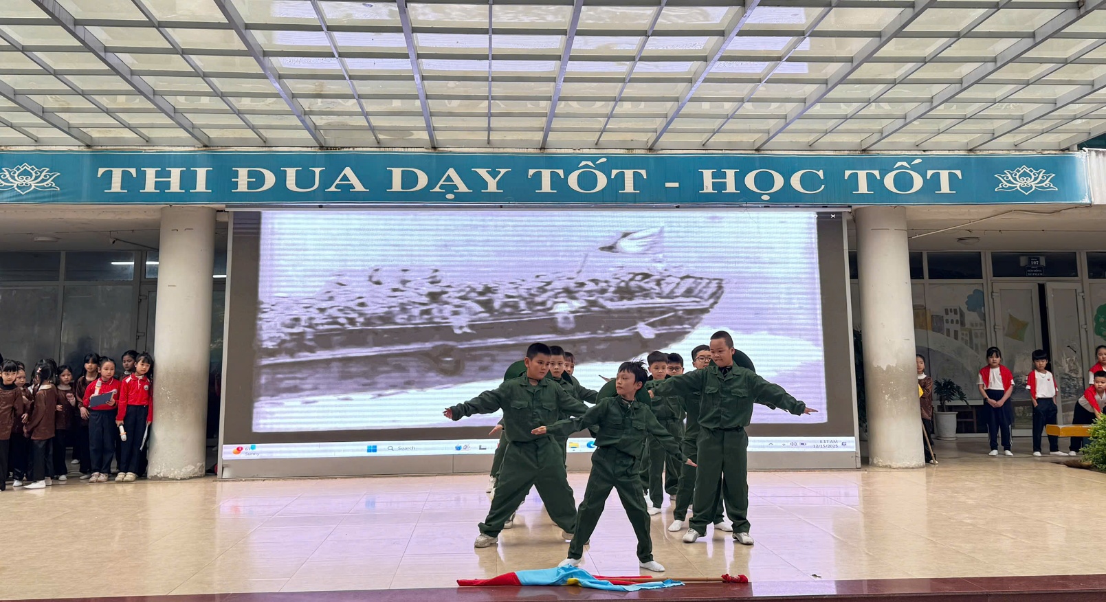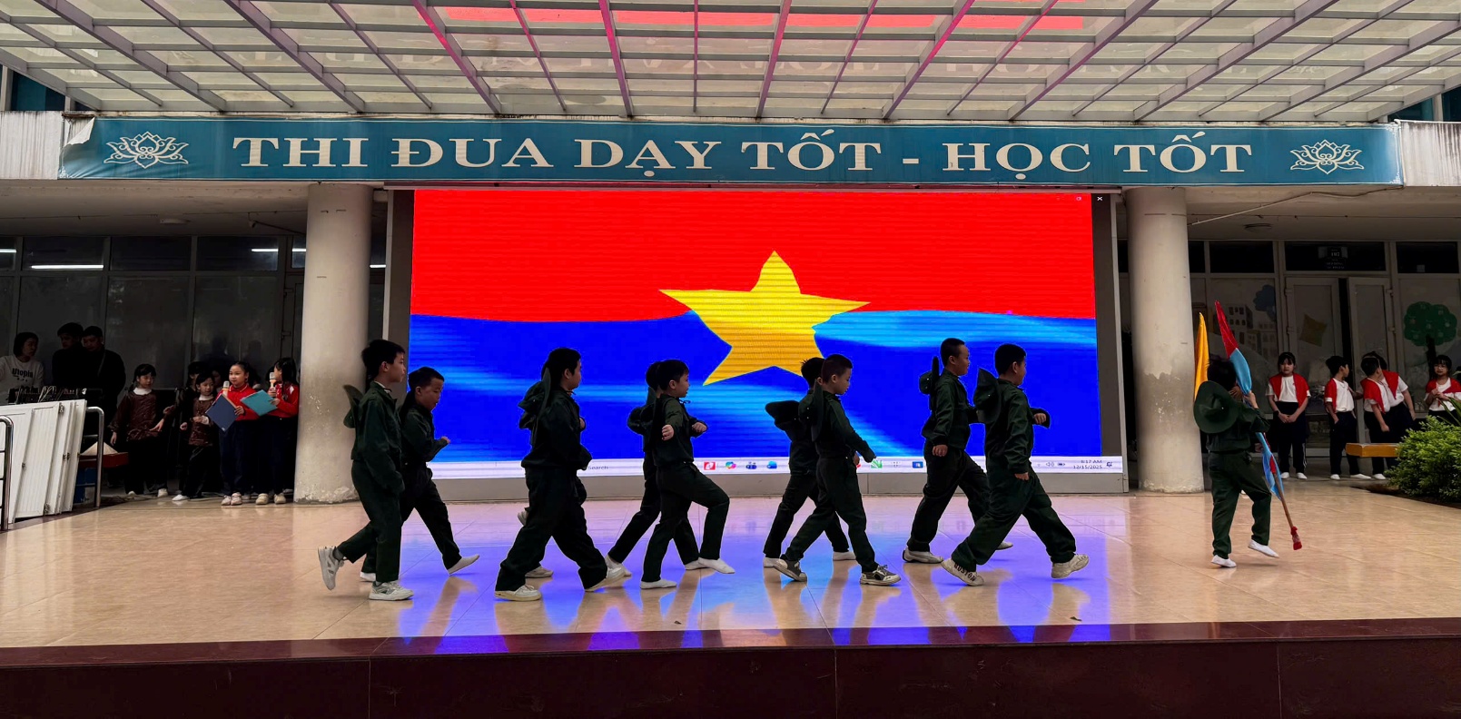Tại buổi lễ, các em học sinh đã được thưởng thức những tiết mục văn nghệ đặc sắc, tái hiện lại khí thế hào hùng của cha ông. Những giai điệu tự hào vang lên không chỉ mang đến không khí vui tươi mà còn là bài học lịch sử sống động, nhẹ nhàng thấm sâu vào tâm hồn trẻ thơ. Qua đó, nhà trường mong muốn gieo vào lòng các em – những mầm non tương lai – tinh thần yêu nước, lòng biết ơn sâu sắc đối với các thế hệ cha anh và tình yêu thương đồng bào.