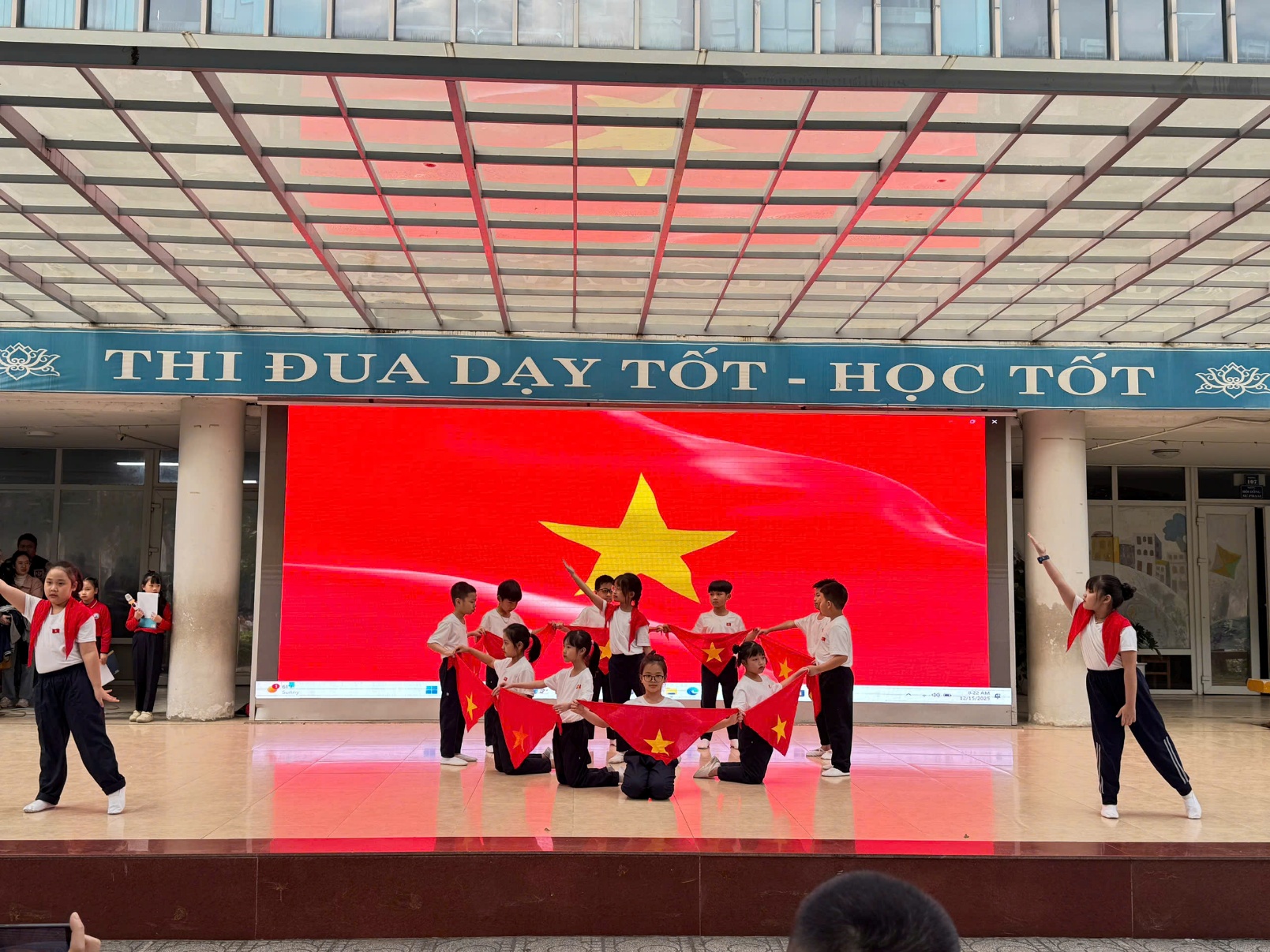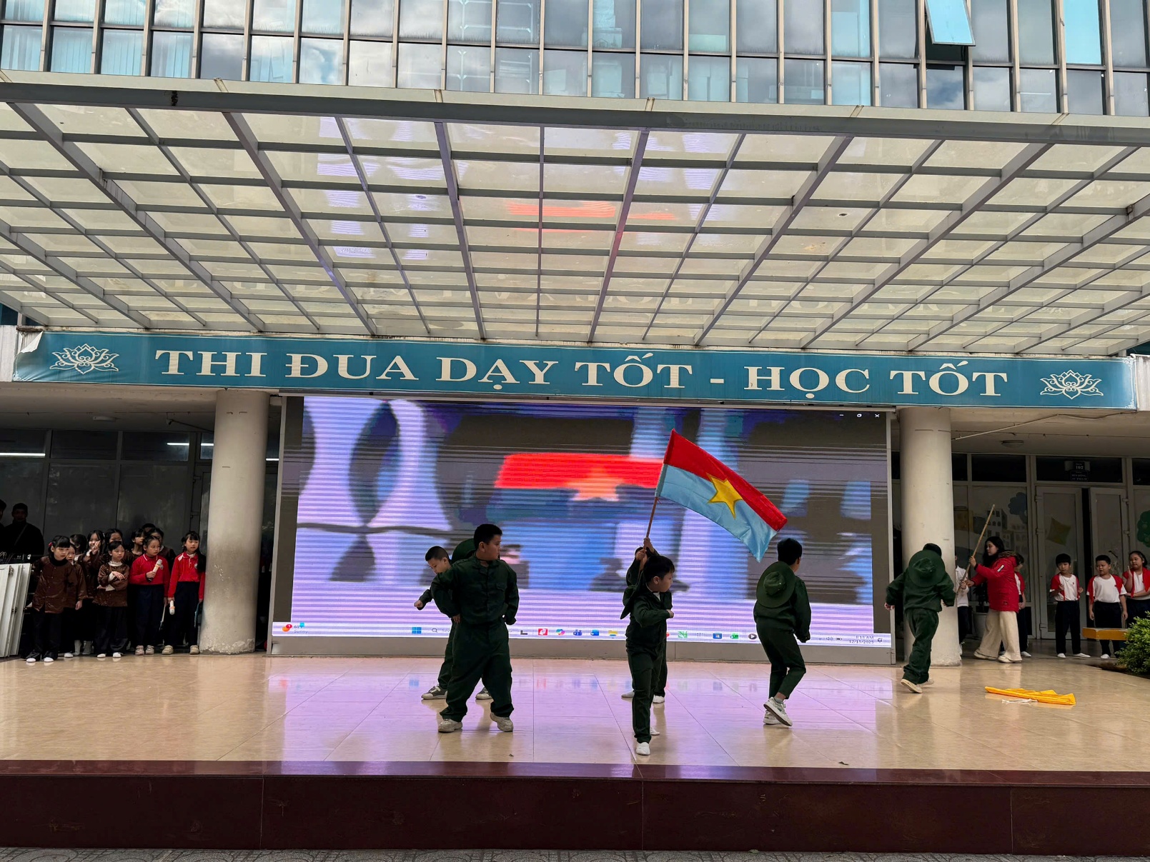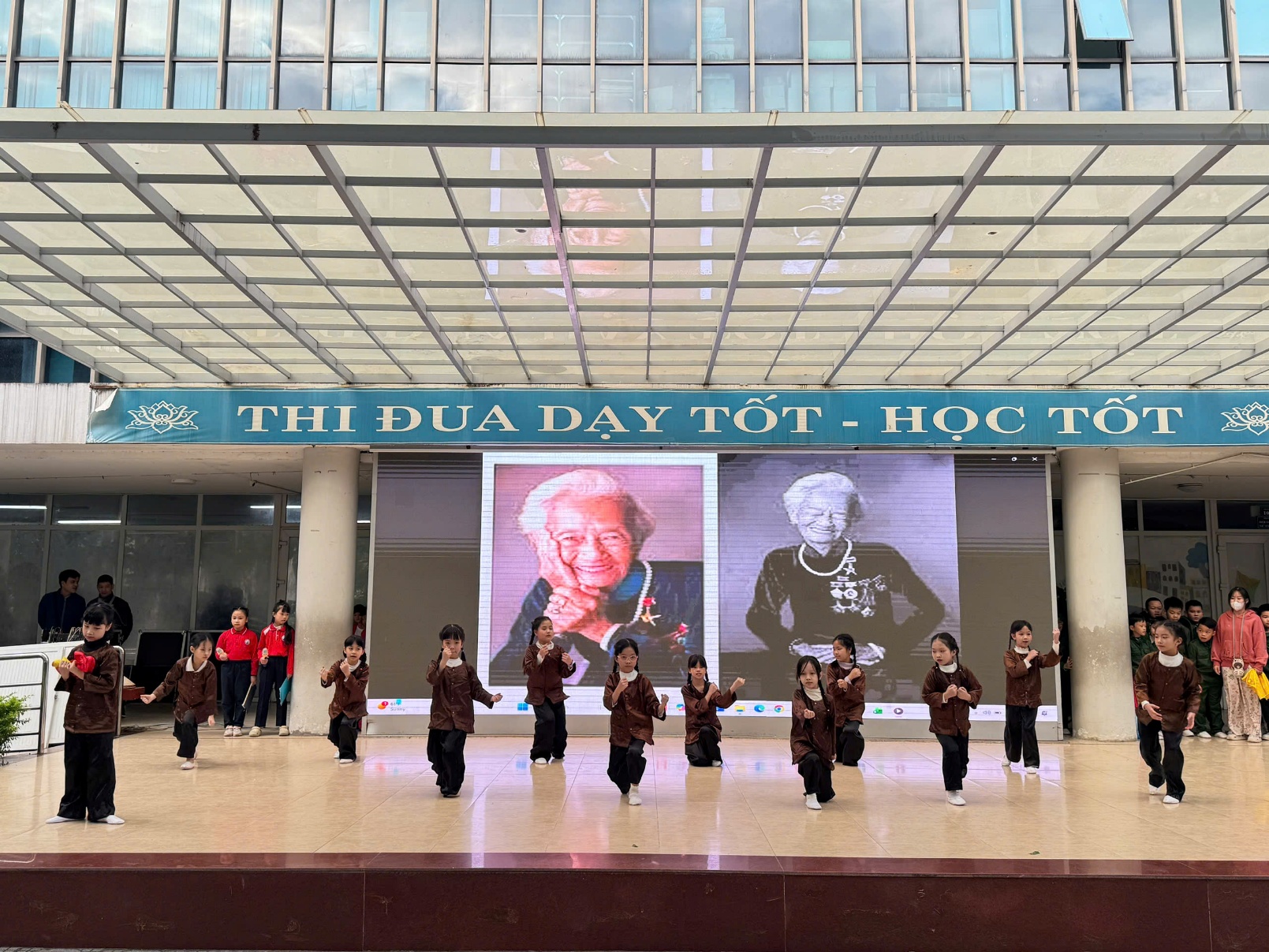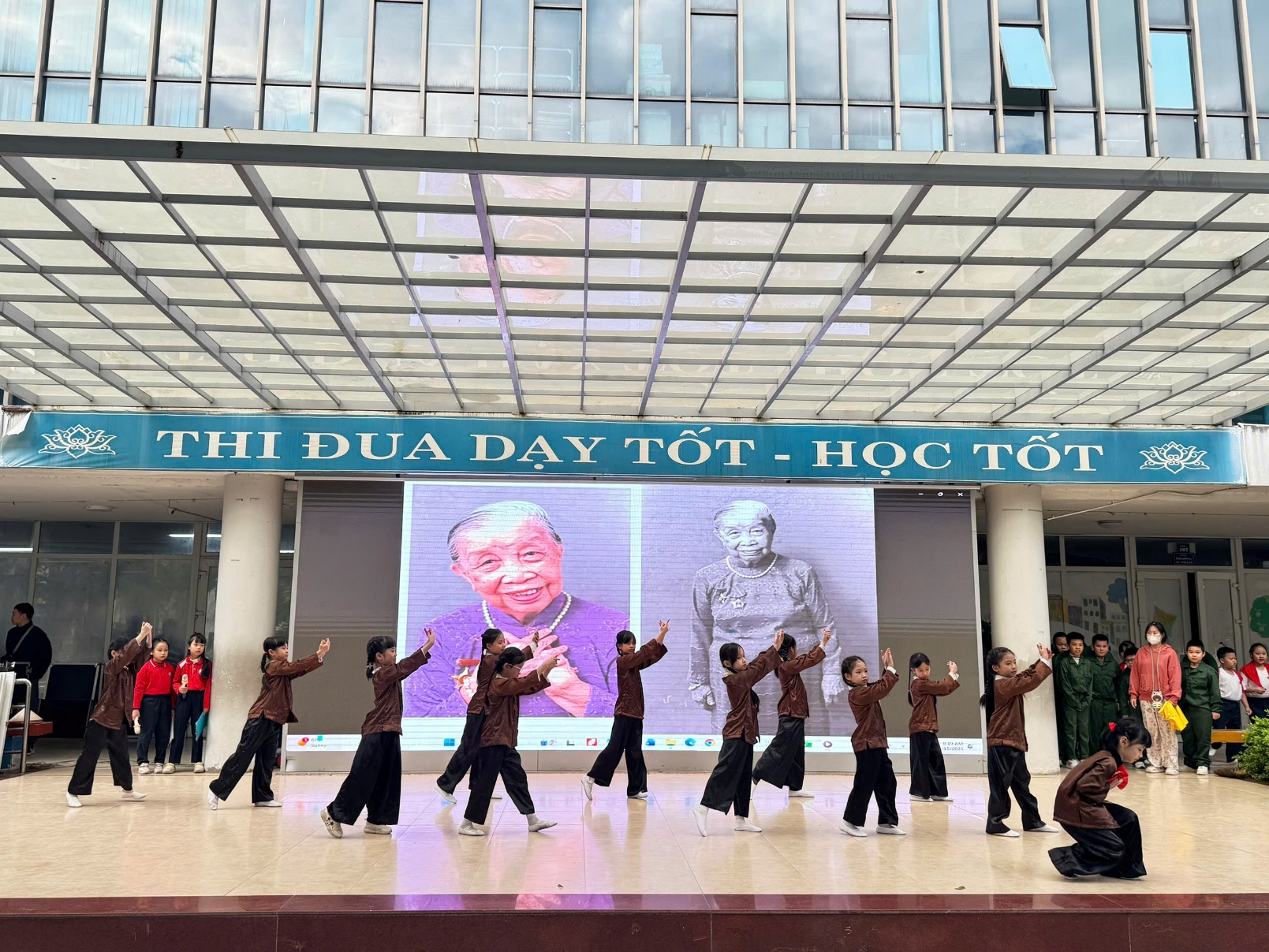 Tại buổi lễ, các em học sinh đã được thưởng thức những tiết mục văn nghệ đặc sắc, tái hiện lại khí thế hào hùng của cha ông. Những giai điệu tự hào vang lên không chỉ mang đến không khí vui tươi mà còn là bài học lịch sử sống động, nhẹ nhàng thấm sâu vào tâm hồn trẻ thơ. Qua đó, nhà trường mong muốn gieo vào lòng các em – những mầm non tương lai – tinh thần yêu nước, lòng biết ơn sâu sắc đối với các thế hệ cha anh và tình yêu thương đồng bào.