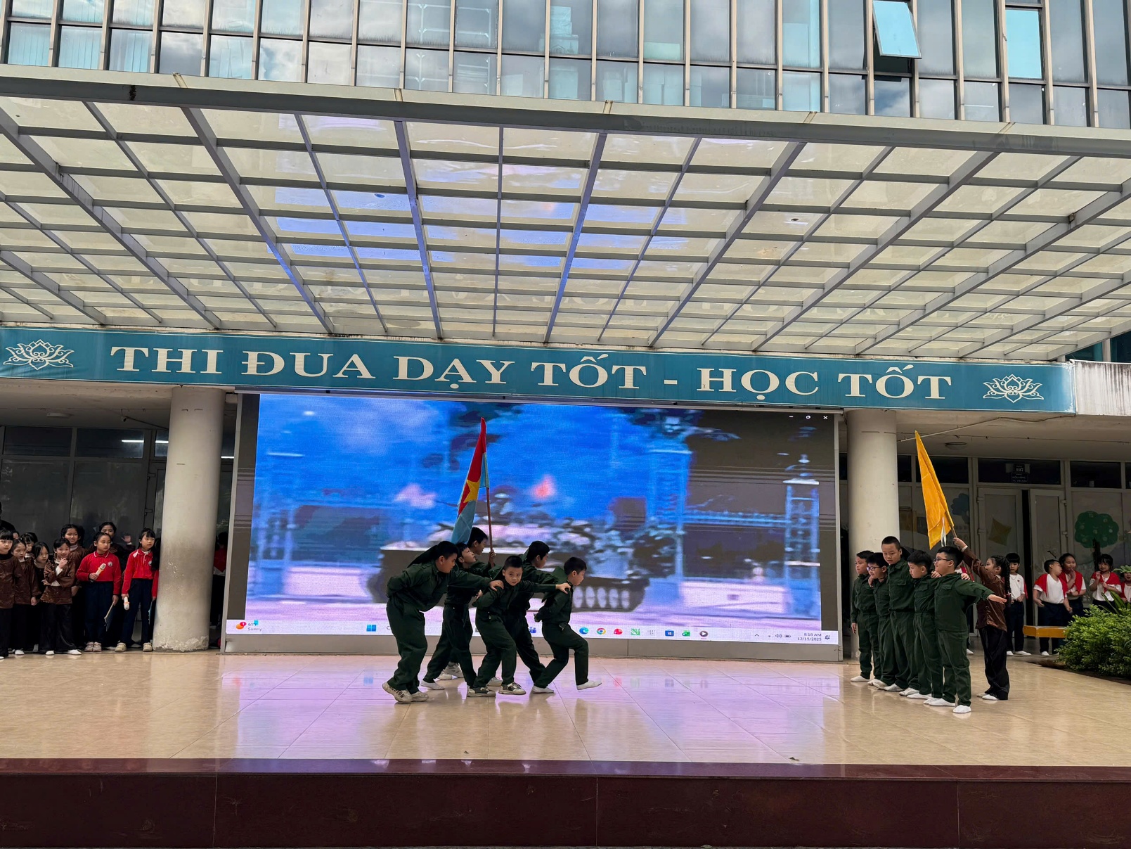 Đặc biệt hơn, buổi lễ chào cờ hôm nay còn lắng đọng nhiều cảm xúc khi cô và trò cùng hòa mình vào không khí trang trọng chào mừng Kỷ niệm 81 năm ngày thành lập Quân đội Nhân dân Việt Nam (22/12/1944 – 22/12/2025).