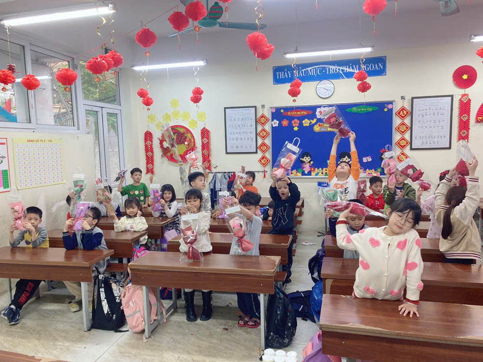 Lớp học đã được trang trí rực rỡ với những chiếc đèn lồng đỏ, những cành đào xuân và những tấm thiệp xinh xắn. Các bạn nhỏ vô cùng hào hứng khi được cùng nhau tham gia nhiều hoạt động thú vị để gửi lời chúc tốt đẹp nhất tới các bà, các mẹ, các cô giáo và các bạn nữ trong lớp.