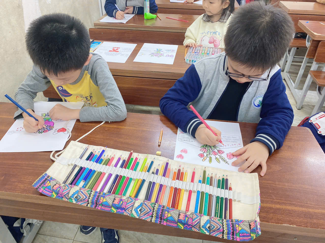 Bên cạnh đó, các bạn học sinh còn tham gia hoạt động vẽ và làm thiệp chúc mừng 8/3, tự tay trang trí những tấm thiệp nhiều màu sắc với những lời chúc ngọt ngào dành tặng những người phụ nữ thân yêu của mình.