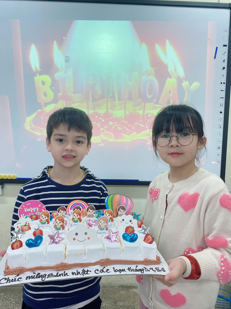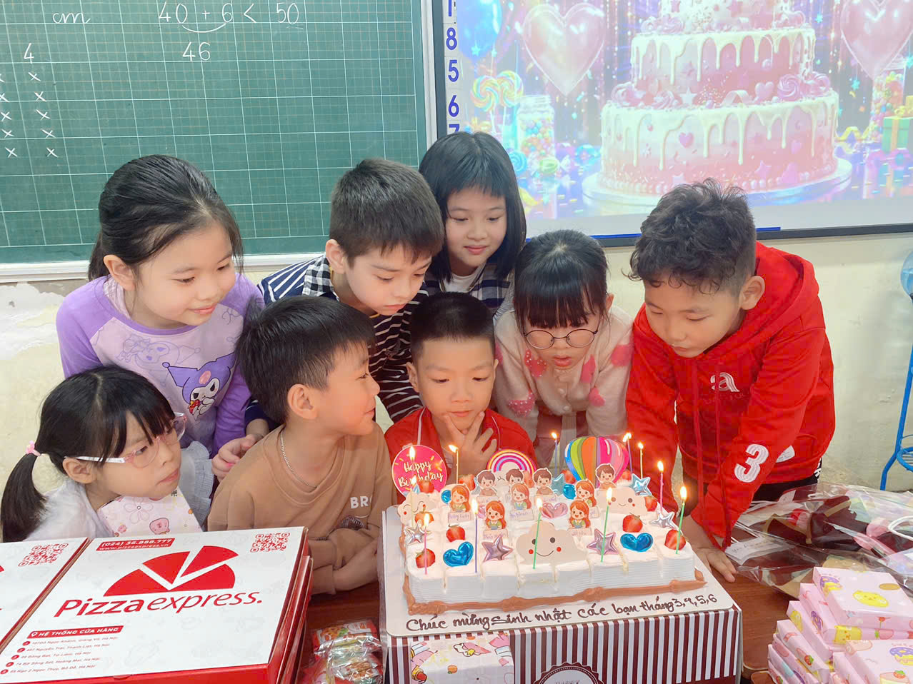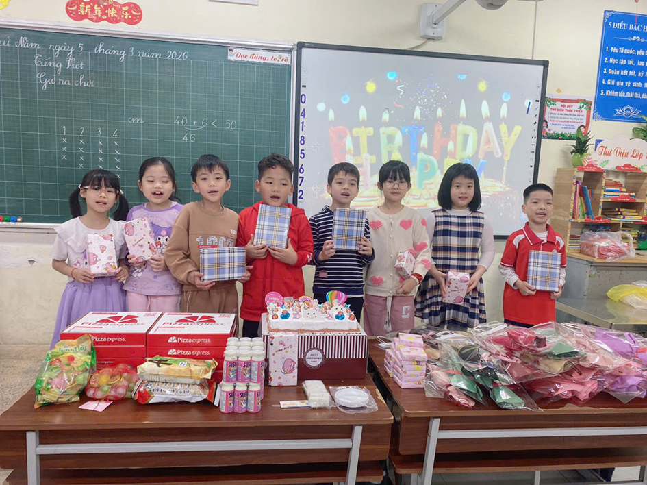 Đặc biệt, lớp cũng tổ chức mừng sinh nhật cho các bạn có ngày sinh trong các tháng 3, 4, 5 và 6. Các bạn cùng nhau thổi nến, hát vang bài hát “Happy Birthday”, chia sẻ những món quà nhỏ trong niềm vui và sự gắn kết.