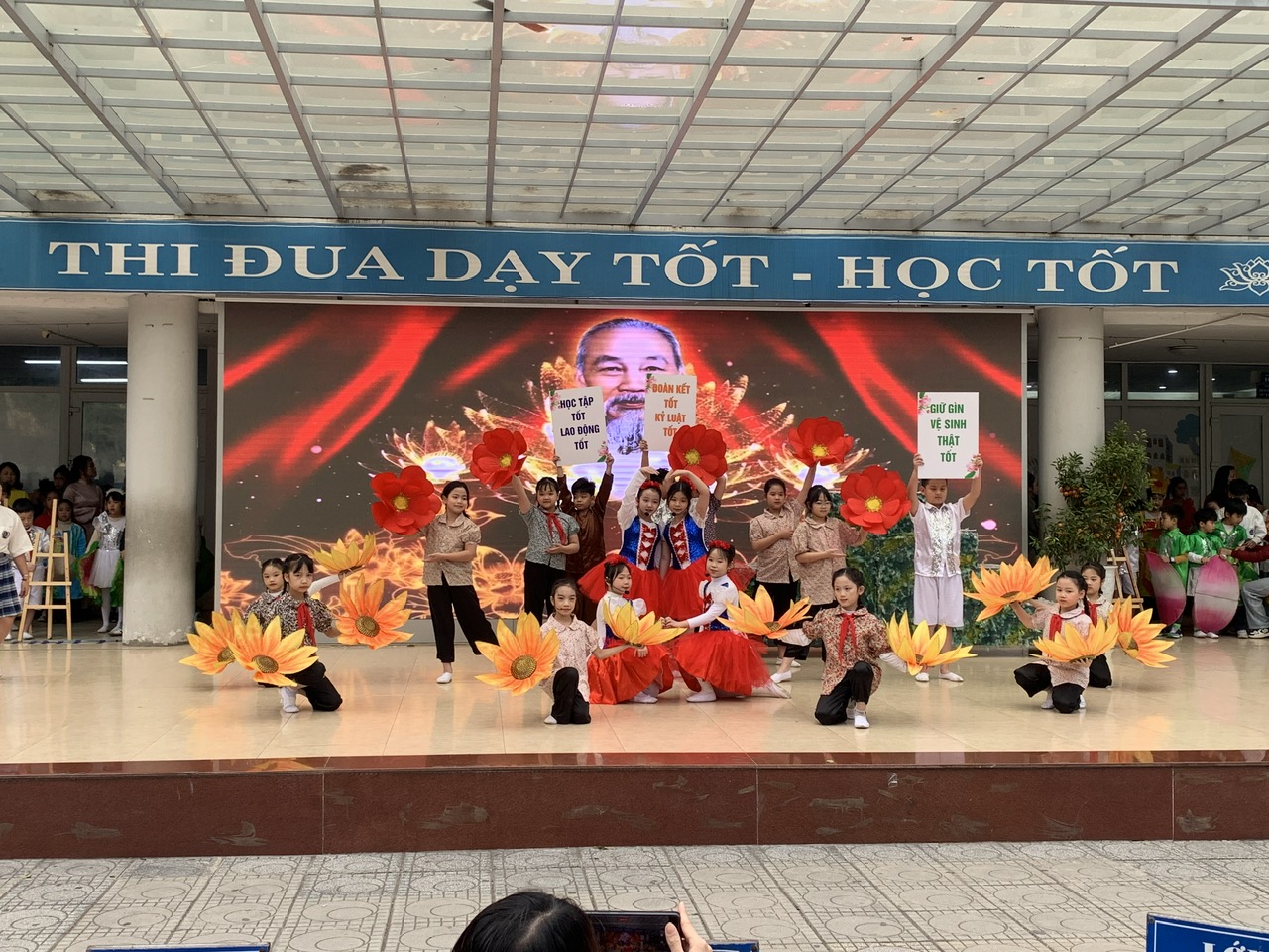 Hòa trong không khí vui vẻ, phấn khởi chào mừng 115 năm ngày Quốc tế Phụ nữ 8/3 (8/3/1910 – 8/3/2025), trường Tiểu học Ngọc Khánh tổ chức hoạt động trải nghiệm với Hội thi “Thiếu nhi Ngọc Khánh sáng tạo, tài năng” Đến với hội thi này, Đội A5 gồm các lớp: 1A5,2A5, 3A5, 4A5, 5A5 đã gửi đến một tiết mục: Kể chuyện minh họa “Bài ca Hồ Chí Minh”. Đây là một số hình ảnh của các con học sinh 1A5 tham gia biểu diễn vào chiều thứ Sáu (8/3/2025), đây là hoạt động thật ý nghĩa như những món quà thân thương gửi tới những người thân yêu.