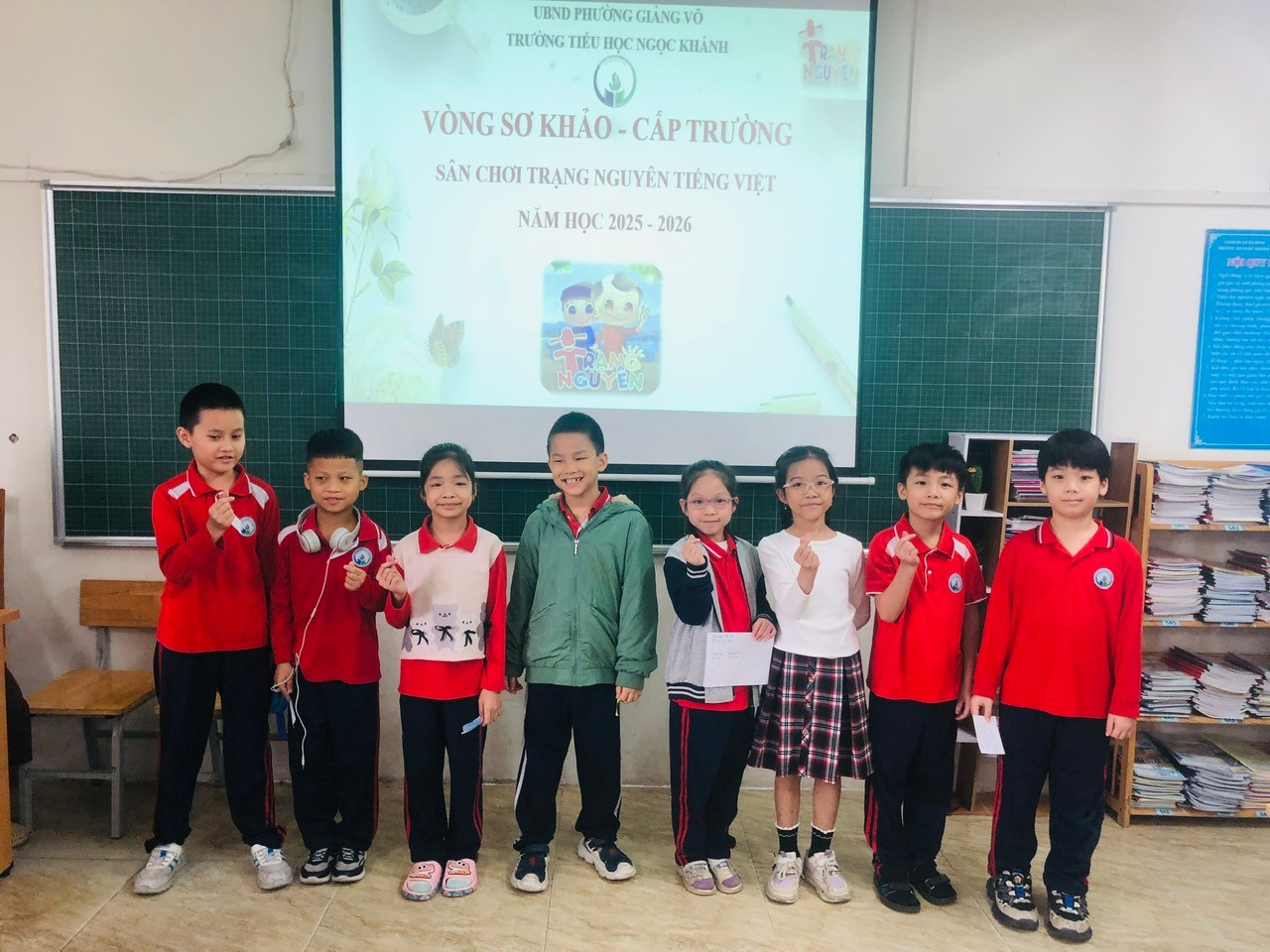 Sáng ngày 9/12/2025, vòng sơ khảo cuộc thi Trạng Nguyên Tiếng Việt cấp trường đã diễn ra tại trường Tiểu học Ngọc Khánh. Đây là cuộc thi nhằm góp phần giúp học sinh Tiểu học rèn luyện phát triển ngôn ngữ, hiểu rõ lịch sử, văn hóa để thêm yêu quê hương, đất nước, trân trọng và giữ gìn Tiếng Việt. Cuộc thi đã thu hút được nhiều học sinh tham gia. Đến với đấu trường Trạng Nguyên Tiếng Việt năm nay, l. ớp 3A7 có 8 học sinh tham gia. các em đã sẵn sàng chinh phục các câu hỏi đa dạng với chủ đề gắn với chương trình học của từng khối lớp. Cuộc thi đã đưa đến cho các em học sinh một cách tiếp cận kiến thức Tiếng Việt vừa gần gũi, vừa thân quen nhưng đầy bất ngờ. Các em bước vào phòng thi với tâm lí hết sức thoải mái, tràn đầy tự tin.