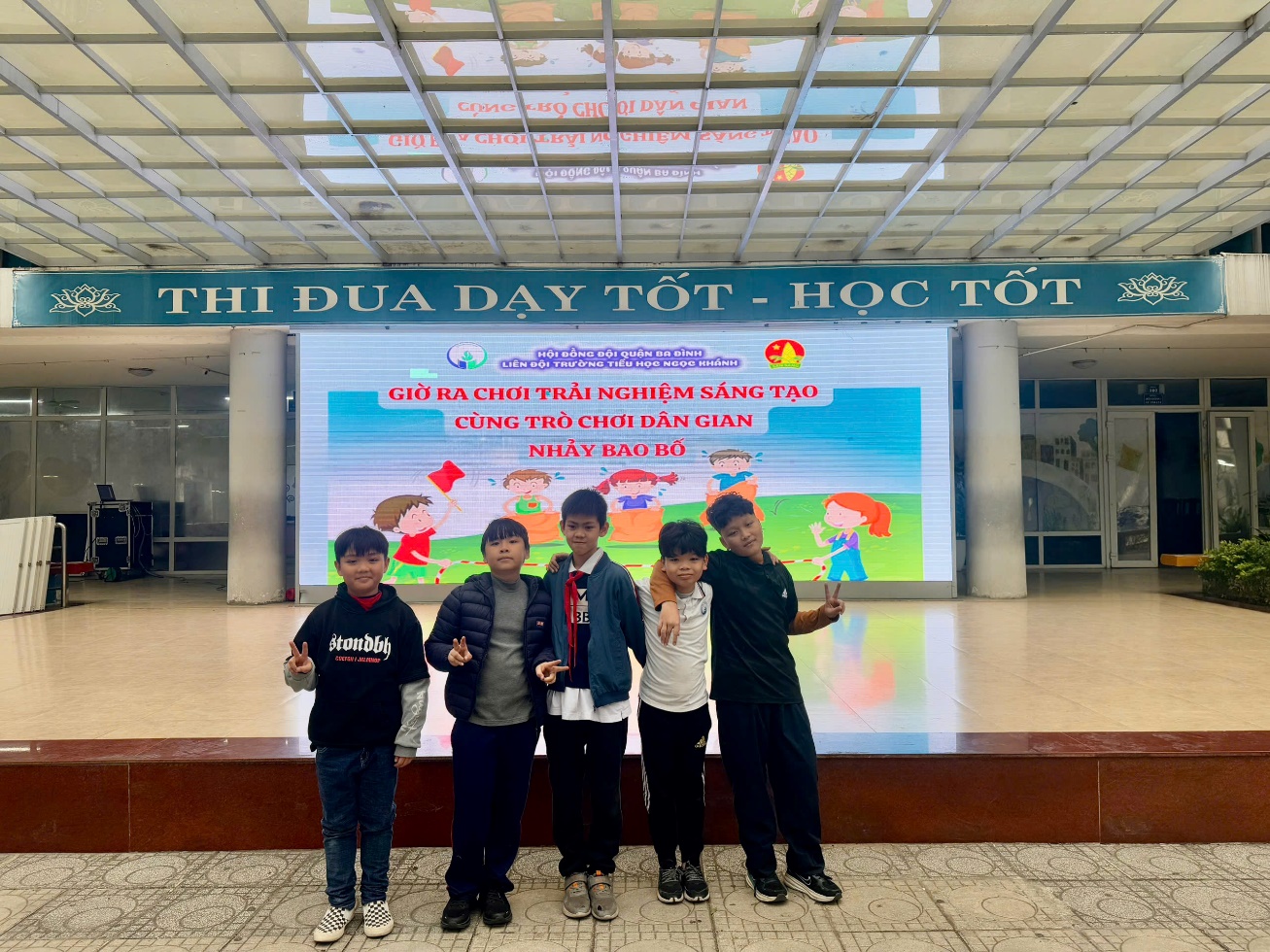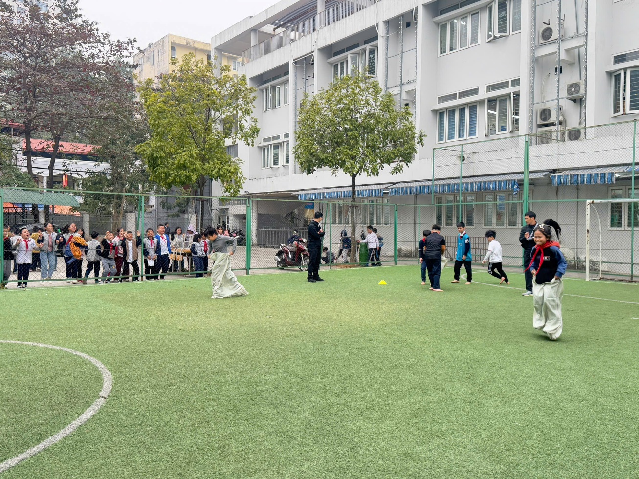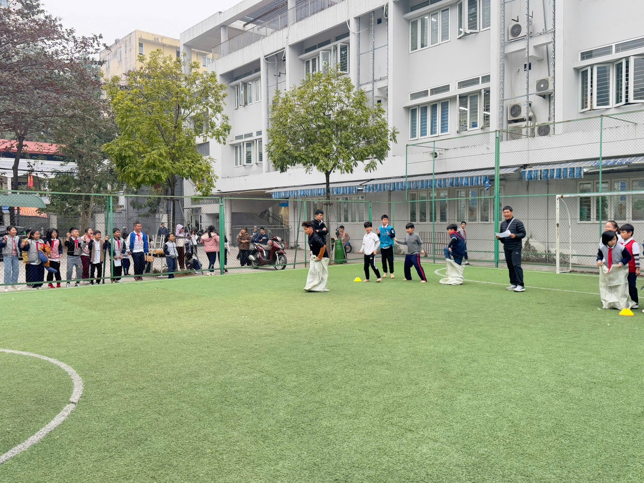 Sáng 30/12/2024, sau khi tham gia buổi sinh hoạt dưới cờ, lớp 4A5 đã chọn được những thành viên tham gia trò chơi nhảy bao bố thi với các lớp trong khối 4.