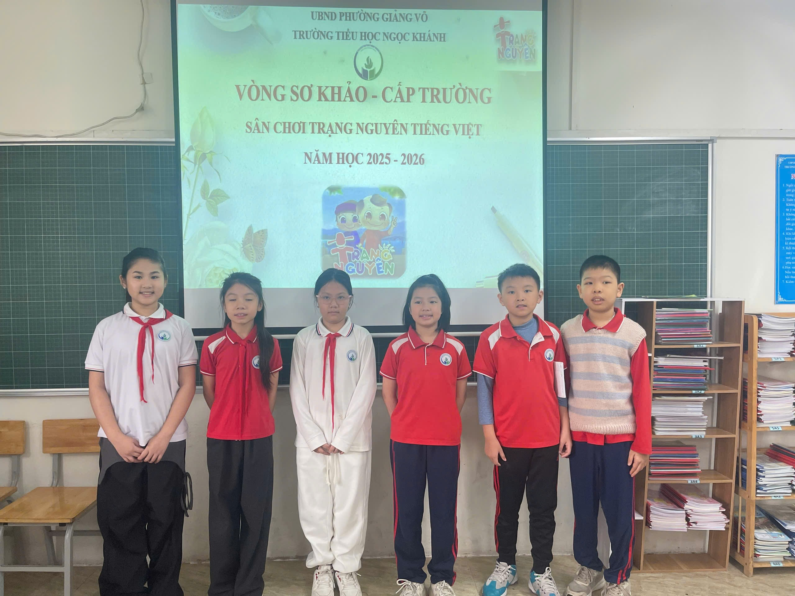 Sáng ngày 10/12/2025, cuộc thi Trạng Nguyên Tiếng Việt cấp trường đã diễn ra tại trường Tiểu học Ngọc Khánh. Đây là cuộc thi nhằm góp phần giúp học sinh Tiểu học rèn luyện phát triển ngôn ngữ, hiểu rõ lịch sử, văn hóa để thêm yêu quê hương, đất nước, trân trọng và giữ gìn Tiếng Việt. Cuộc thi đã thu hút được nhiều học sinh tham gia. Đến với đấu trường Trạng Nguyên Tiếng Việt năm nay, các em học sinh 5A1 đã sẵn sàng chinh phục các câu hỏi đa dạng với chủ đề gắn với chương trình học của từng khối lớp. Cuộc thi đã đưa đến cho các em học sinh một cách tiếp cận kiến thức Tiếng Việt vừa gần gũi, vừa thân quen nhưng đầy bất ngờ. Các em bước vào phòng thi với tâm lí hết sức thoải mái, tràn đầy tự tin.