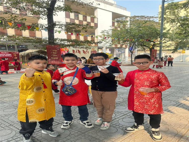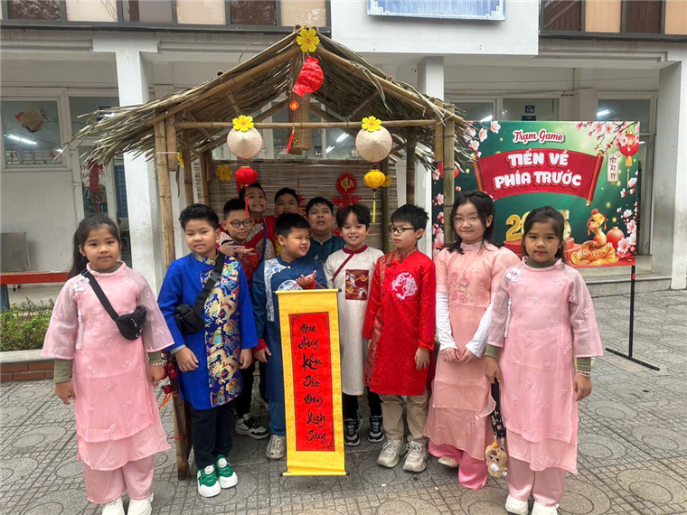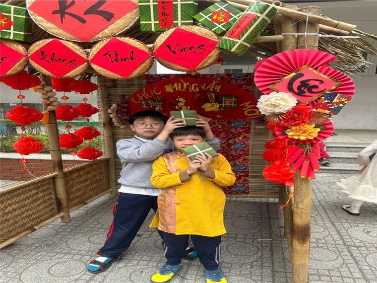 Sau khi tìm hiểu về cách gói bánh, từng học sinh lớp 5A1 được tự tay gói chiếc bánh chưng của riêng mình khiến các em rất vui. Bên cạnh đó các bạn học sinh lớp 5A1còn được tham gia vào các trò chơi dân gian: trả lời các câu đố vui về chủ đề ngày Tết, thi giã bánh dày, rung chuông vàng, tự tham quan và mua sắm ở các gian hàng ở Hội chợ xuân,…