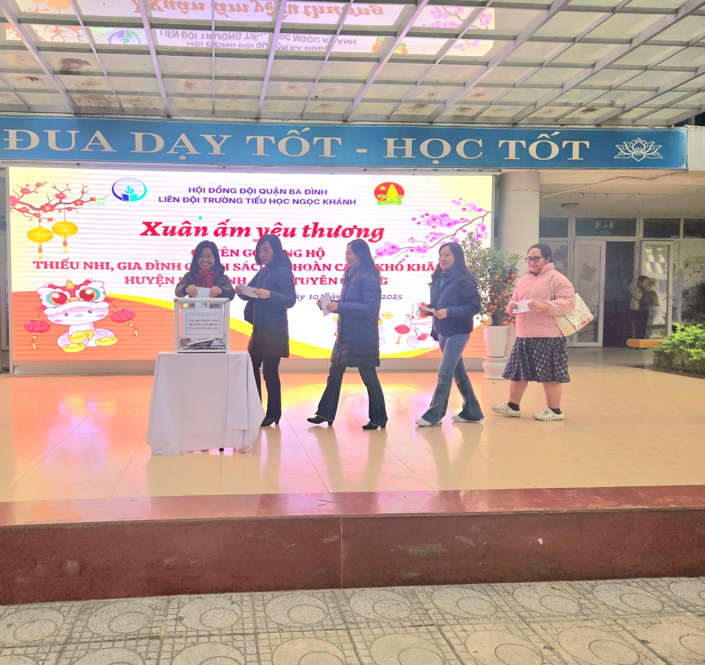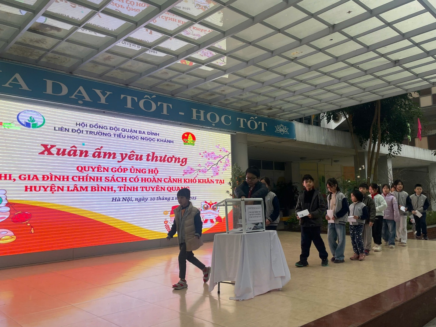 Thực hiện công văn số 02/ĐTN-PGDĐT, sáng ngày 10/02/2025 trường Tiểu học Ngọc Khánh đã tổ chức quyên góp ủng hộ trong giáo viên- học sinh toàn trường. Chương trình đã nhận được sự ủng hộ nhiệt tình của các bậc phụ huynh và các con học sinh, các thầy cô giáo trong toàn trường. Với tinh thần “Tương thân, tương ái”; “Lá lành đùm lá rách”, tập thể học sinh lớp 5A3 đã quyên góp được số tiền 4 550 000 đồng. Hi vọng mang xuân âm đến với các bạn nhỏ tỉnh Tuyên Quang.