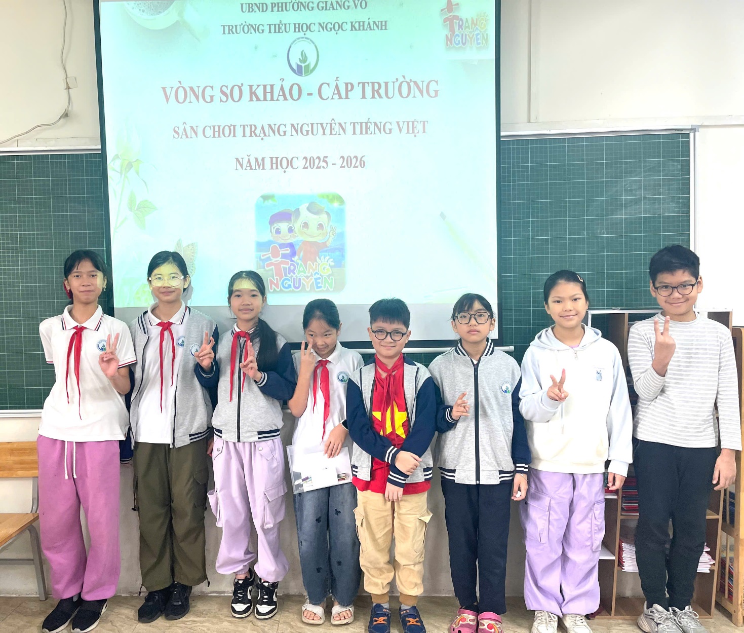 Sáng ngày 10/12/2025, cuộc thi Trạng Nguyên Tiếng Việt cấp trường đã diễn ra tại trường Tiểu học Ngọc Khánh. Đây là cuộc thi nhằm góp phần giúp học sinh Tiểu học rèn luyện phát triển ngôn ngữ, hiểu rõ lịch sử, văn hóa để thêm yêu quê hương, đất nước, trân trọng và giữ gìn Tiếng Việt. Cuộc thi đã thu hút được nhiều học sinh tham gia. Đến với đấu trường Trạng Nguyên Tiếng Việt năm nay, các em học sinh 5A3 đã sẵn sàng chinh phục các câu hỏi đa dạng với chủ đề gắn với chương trình học của từng khối lớp. Cuộc thi đã đưa đến cho các em học sinh một cách tiếp cận kiến thức Tiếng Việt vừa gần gũi, vừa thân quen nhưng đầy bất ngờ. Các em bước vào phòng thi với tâm lí hết sức thoải mái, tràn đầy tự tin.