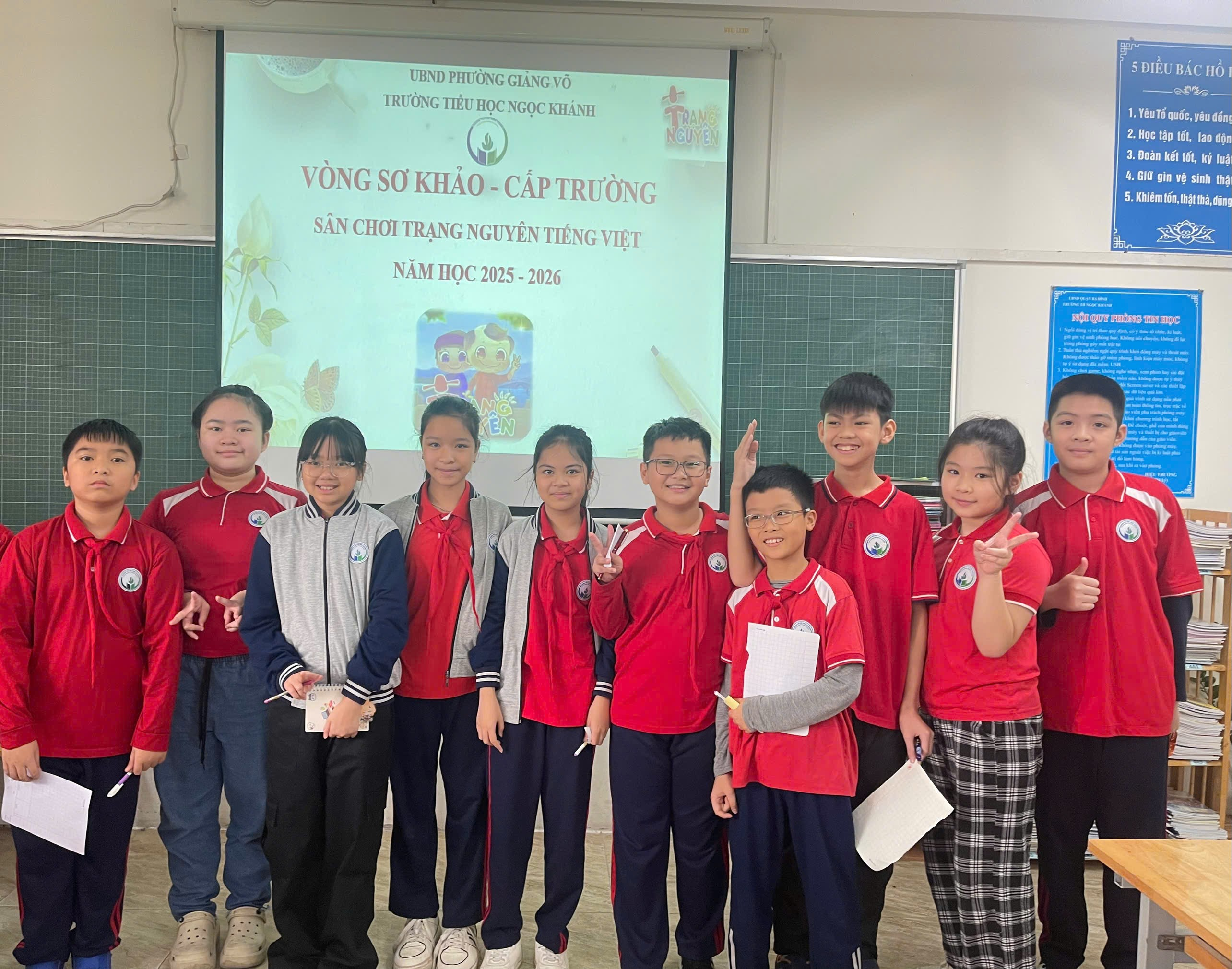 Sáng ngày 10/12/2025, cuộc thi Trạng Nguyên Tiếng Việt cấp trường đã diễn ra tại trường Tiểu học Ngọc Khánh. Đây là cuộc thi nhằm góp phần giúp học sinh Tiểu học rèn luyện phát triển ngôn ngữ, hiểu rõ lịch sử, văn hóa để thêm yêu quê hương, đất nước, trân trọng và giữ gìn Tiếng Việt. Cuộc thi đã thu hút được nhiều học sinh tham gia. Đến với đấu trường Trạng Nguyên Tiếng Việt năm nay, các em học sinh 5A5 đã sẵn sàng chinh phục các câu hỏi đa dạng với chủ đề gắn với chương trình học của từng khối lớp. Cuộc thi đã đưa đến cho các em học sinh một cách tiếp cận kiến thức Tiếng Việt vừa gần gũi, vừa thân quen nhưng đầy bất ngờ. Các em bước vào phòng thi với tâm lí hết sức thoải mái, tràn đầy tự tin.