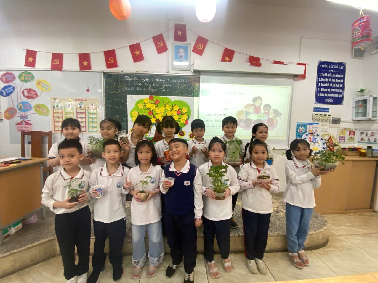 Tiết chuyên đề "Biết ơn thầy cô" tại lớp 2A5 trường Tiểu học Ngọc Khánh đã mang đến những khoảnh khắc lắng đọng và ý nghĩa thông qua mô hình "Cây biết ơn" sáng tạo. Đây không chỉ là một hoạt động mà là nơi tình cảm thầy trò được hiển hiện một cách trực quan, sâu sắc. Học sinh đã cùng nhau vun đắp chiếc cây này bằng hai món quà tinh thần quý giá. "trái ngọt" là lời cam kết về sự trưởng thành, về những tiến bộ mà các em đạt được nhờ sự dìu dắt của thầy cô; còn "hoa biết ơn" là những lời chúc, những thông điệp chân thành nhất từ sâu thẳm trái tim. "Cây Biết ơn" rực rỡ đã trở thành một "Bảo tàng Cảm xúc," mang lại sự xúc động lớn lao cho đội ngũ giáo viên. Hoạt động này một lần nữa khẳng định thành công của nhà trường trong việc bồi đắp lòng biết ơn và truyền thống Tôn sư trọng đạo cho thế hệ trẻ.