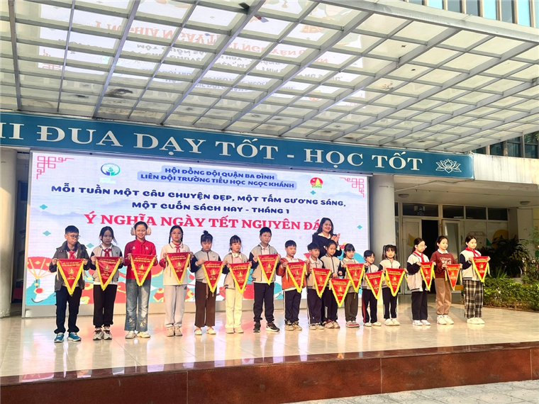 Thứ Hai, ngày 06/01/2025, Liên đội trường Tiểu học Ngọc Khánh tổ chức buổi Sinh hoạt dưới cờ với Chủ đề: Mỗi tuần một câu chuyện đẹp, một tấm gương sáng, một cuốn sách hay – Tháng 1: Ý nghĩa của ngày Tết Nguyên đán.