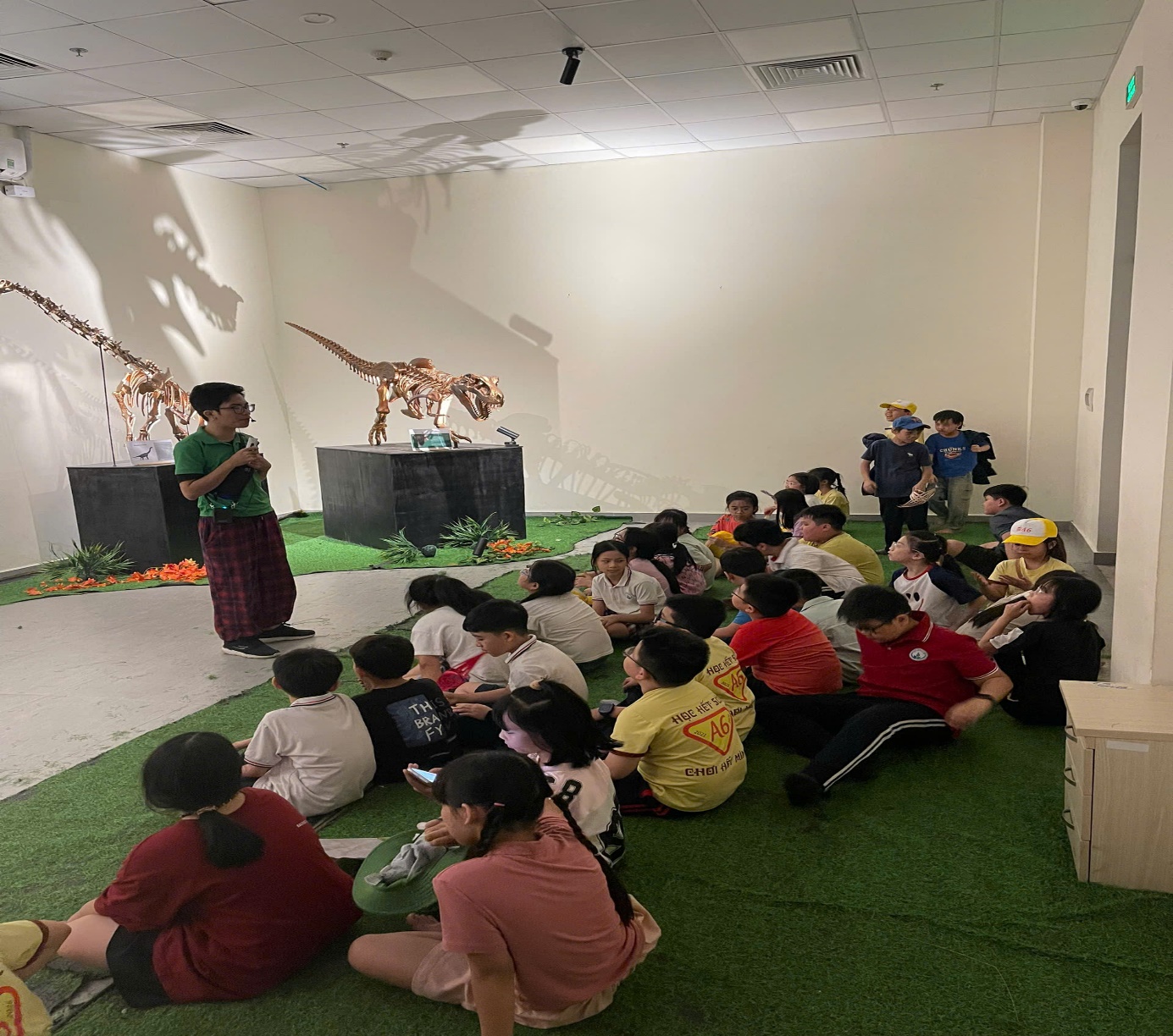 Bên cạnh đó, các bạn nhỏ còn được hóa thân thành những nhà khảo cổ học nhí khi khám phá bảo tàng khủng long. Việc được tận mắt nhìn thấy những bộ xương khủng long khổng lồ đã khiến các em vô cùng thích thú và ngạc nhiên.