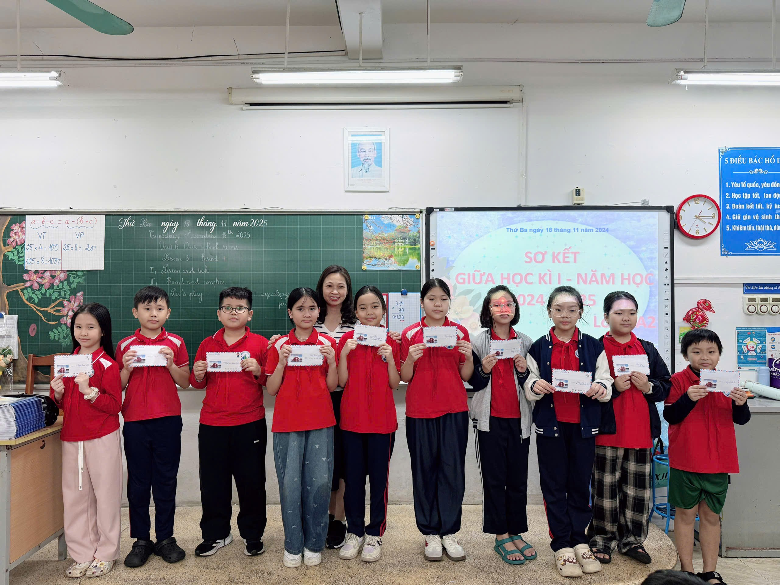 1. Tích cực tham gia phong trào thi đua dạy tốt - học tốt, nhiều bạn đã dành được những bông hoa điểm mười để tặng các thầy cô. Những bạn xuất sắc nhất đã được cô giáo và các bác trong Ban phụ huynh khen thưởng.