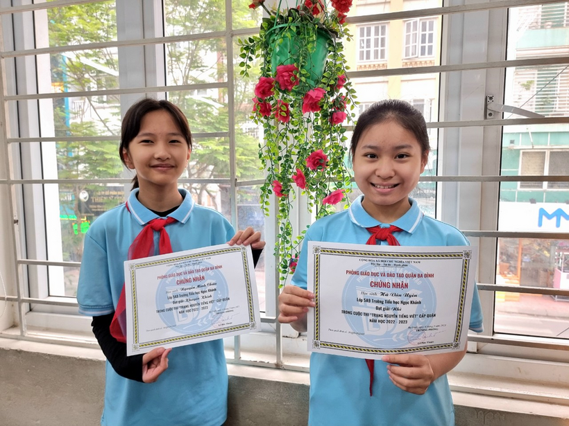 Sáng nay, ngày 5/4/2023, các bạn lớp 5A9 rất phấn khởi khi nhận được tin vui từ Vòng thi Hội cấp Thành phố cuộc thi Trạng Nguyên Tiếng Việt 2023. Hai bạn gái xinh xắn, cá tính của lớp tham gia kì thi đã đều đạt giải cao. Bạn Hà Vân Uyên đạt giải Nhì cấp quận và giải Khuyến Khích cấp thành phố. Bạn Nguyễn Minh Châu A đạt giải Khuyến Khích cấp quận và giải Ba cấp thành phố. Với niềm yêu thích môn Tiếng Việt, Vân Uyên và Minh Châu A luôn thể hiện được tư duy sáng tạo, cách viết văn sinh động, giàu cảm xúc trong các giờ học trên lớp. Niềm vui đến với hai bạn cũng là niềm tự hào của cô giáo và các bạn lớp 5A9.