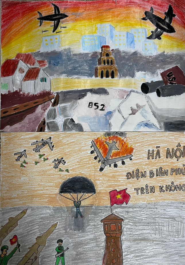 Để kỷ niệm sự kiện lịch sử này, các em học sinh khối 4 Trường Tiểu học Ngọc Khánh đã tích cực tham gia hoạt động vẽ tranh về chiến thắng Điện Biên Phủ trên không. Dưới đây là một số tác phẩm của các em.