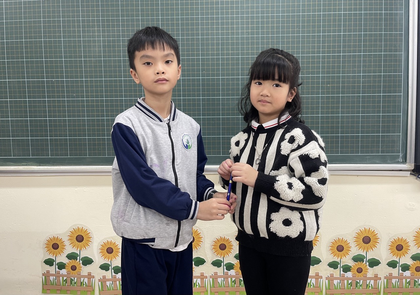Bạn Bảo Lâm trả lại bút bị mất cho bạn Anh Thư