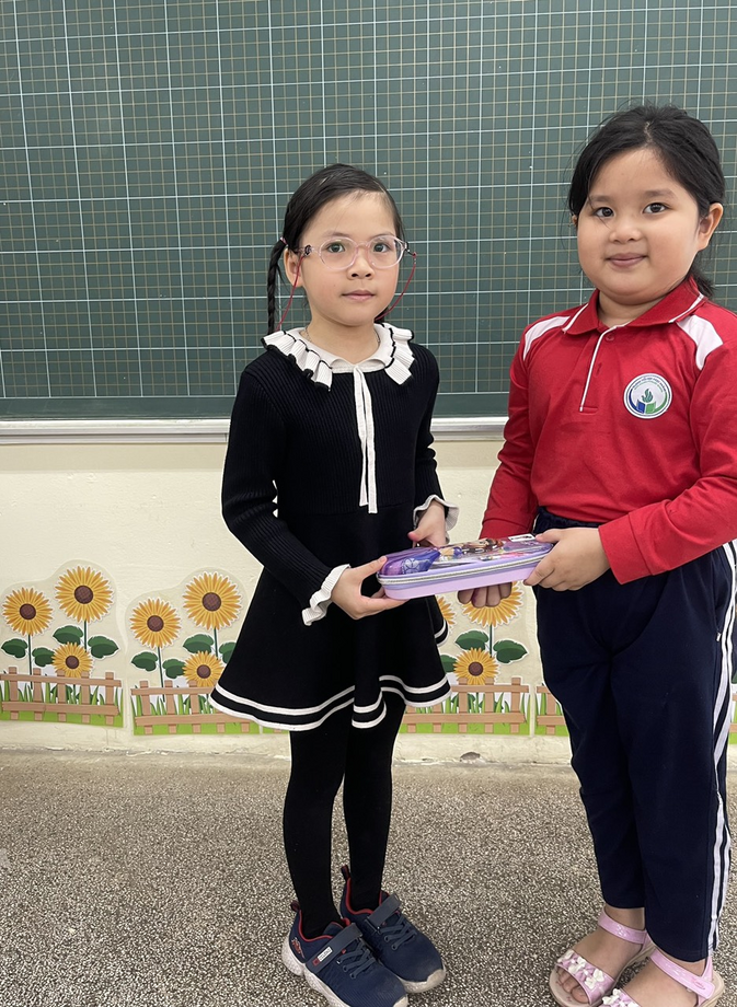 Bạn Ánh Dương trả lại hộp bút bị mất cho bạn Bảo Anh