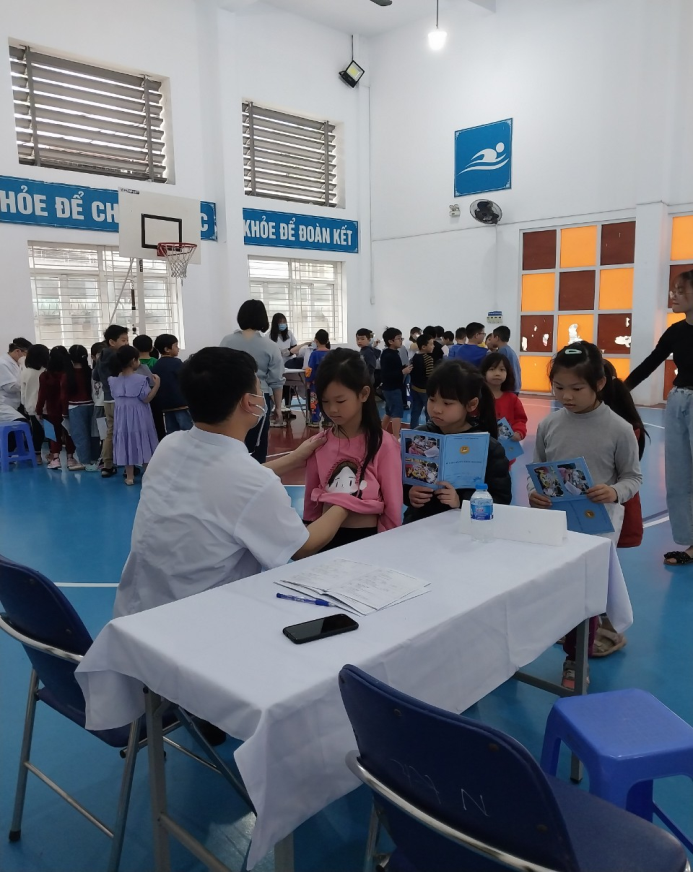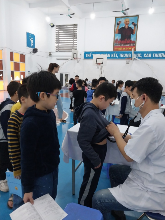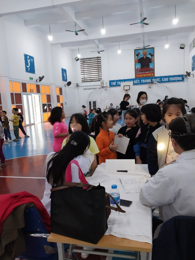 Ngày 7/3/2023, trường tiểu học Ngọc Khánh phối hợp với Trung tâm Y tế quận Ba Đình tổ chức khám sức khỏe định kỳ học sinh toàn trường. Đây là hoạt động thường niên nằm trong kế hoạch của nhà trường nhằm đảm bảo sức khoẻ cho các em học sinh để có điều kiện học tập tốt, đồng thời phân loại sức khỏe; phát hiện sớm một số bệnh thông thường; thống kê các trường hợp cần theo dõi đặc biệt về sức khỏe để kết hợp cùng gia đình học sinh có hướng chăm sóc, điều trị hiệu quả. Dưới đây là một số hình ảnh buổi khám bệnh của học sinh lớp 2A3.