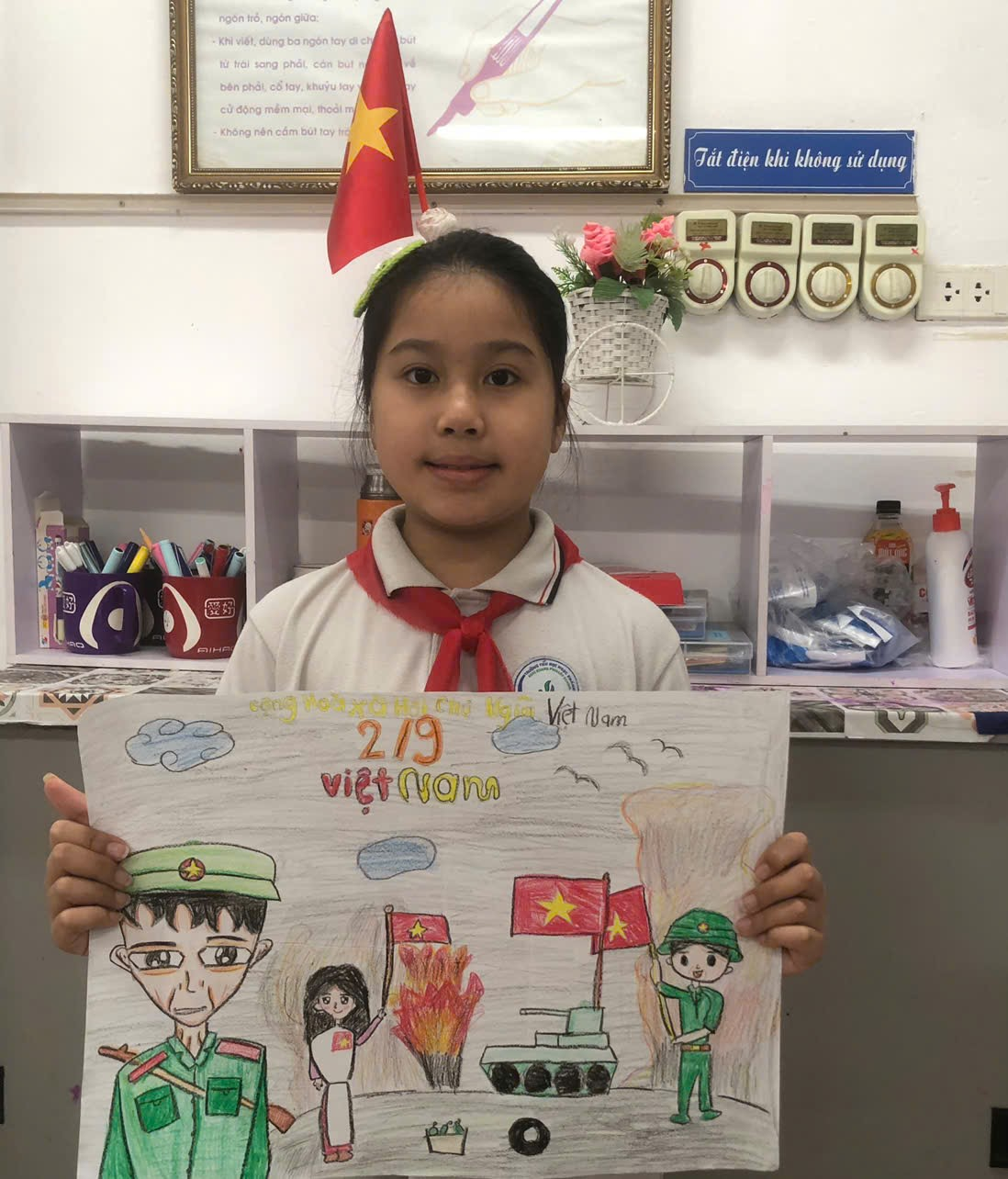 Trong đó, các em học sinh lớp 3A1 đã vô cùng hào hứng, tích cực tham gia cuộc thi vẽ tranh theo chủ đề “Em yêu Tổ quốc Việt Nam”. Với tình yêu với đất nước, con người Việt Nam, các em đã tái hiện hình ảnh các tấm gương anh hùng, liệt sĩ; ca ngợi chiến công vẻ vang, sự kiện lịch sử trọng đại của đất nước và các danh lam thắng cảnh, di tích lịch sử của đất nước và Thủ đô; tình yêu dành cho cuộc sống hòa bình, mong ước của thiếu nhi về đất nước Việt Nam hòa bình, phát triển,… qua các nét vẽ vô cùng đáng yêu. Những hình ảnh ngộ nghĩnh và màu sắc tươi sáng đã tạo nên những tác phẩm hội họa vô cùng đẹp mắt.