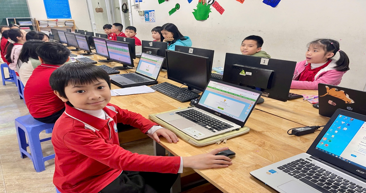Học sinh lớp 4A2 tham gia sân chơi “Đấu trường Toán học Vioedu” cấp trường.