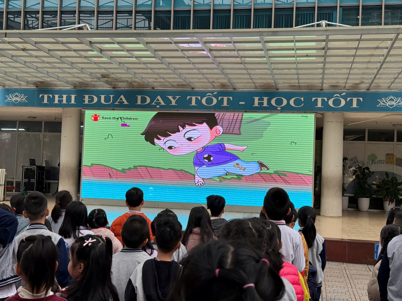 Học sinh lớp 5A2 hào hứng tham gia buổi tuyên truyền các kĩ năng phòng tránh tai nạn thương tích trong những buổi sinh hoạt đầu tuần.