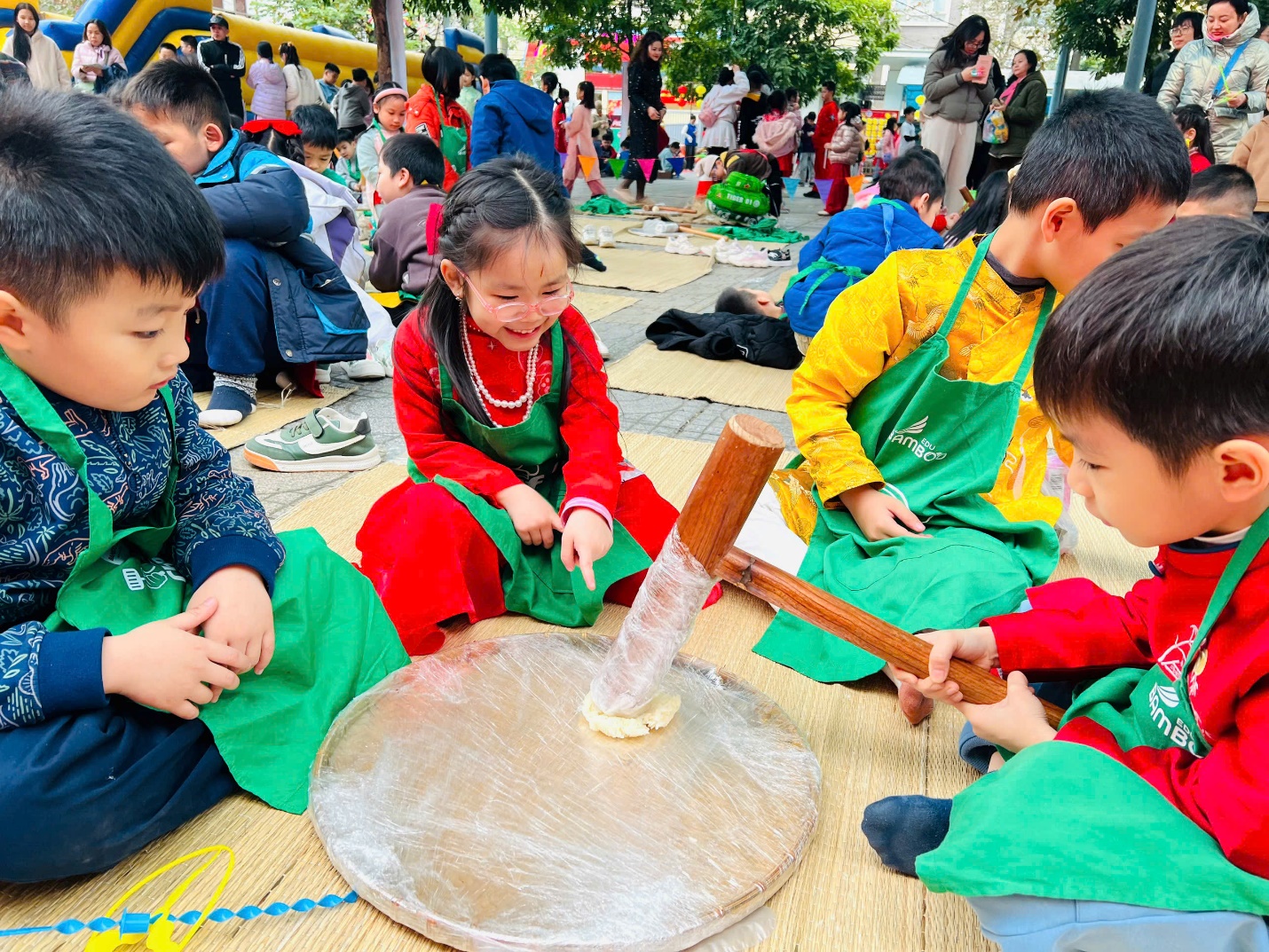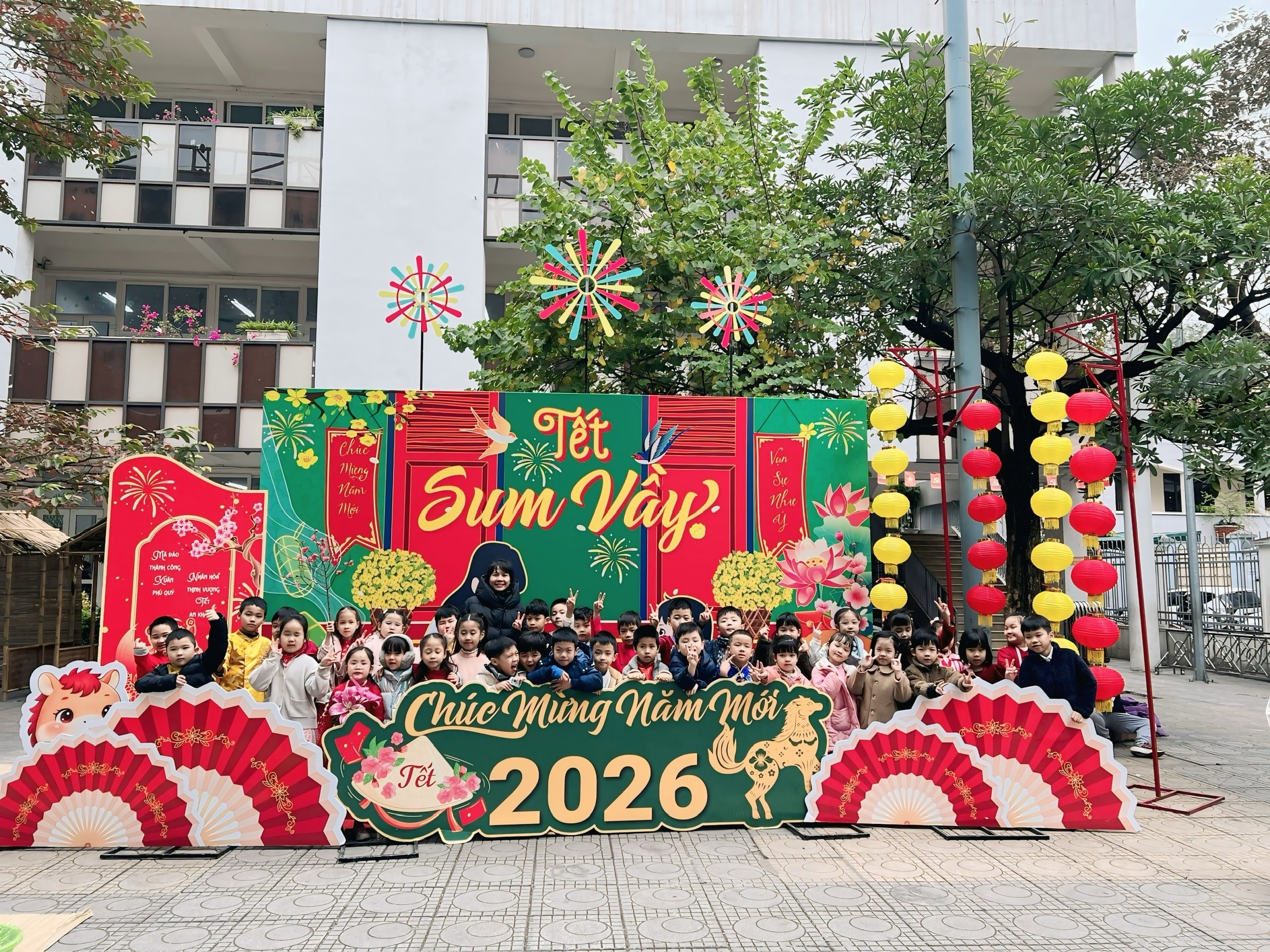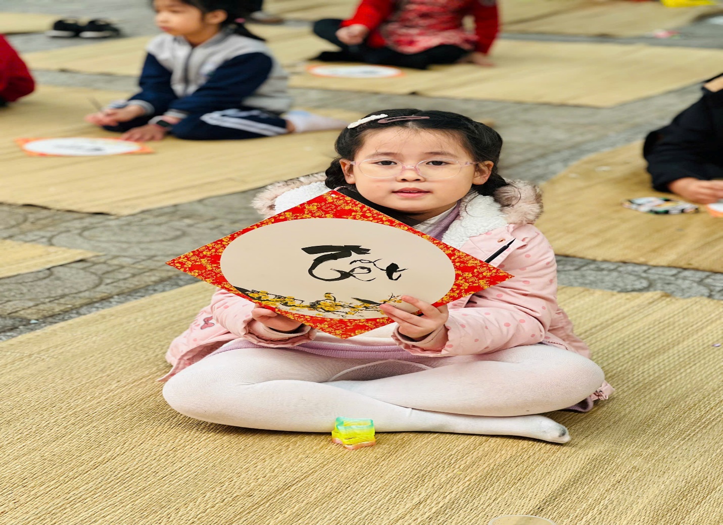 Các em được tham gia giã bánh dày, chơi Rung chuông vàng, tham quan và trải nghiệm viết thư pháp, cảm nhận nét đẹp của chữ nghĩa ngày xuân.
