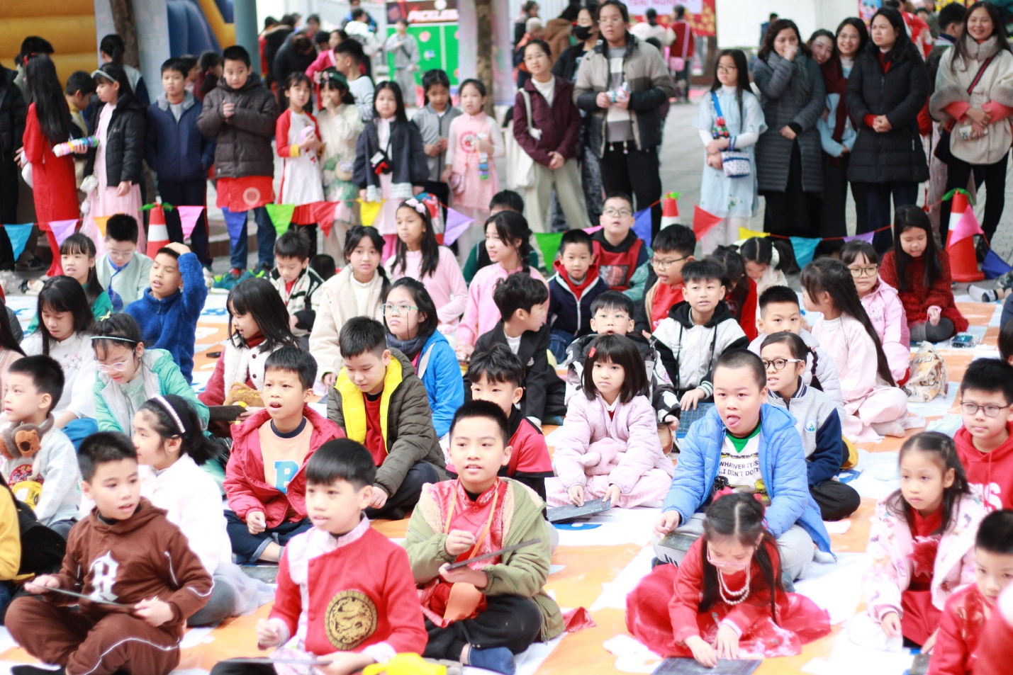 Bên cạnh đó, không gian hội chợ Tết với nhiều gian hàng trải nghiệm đã mang đến cho các em những phút giây vô cùng thích thú.