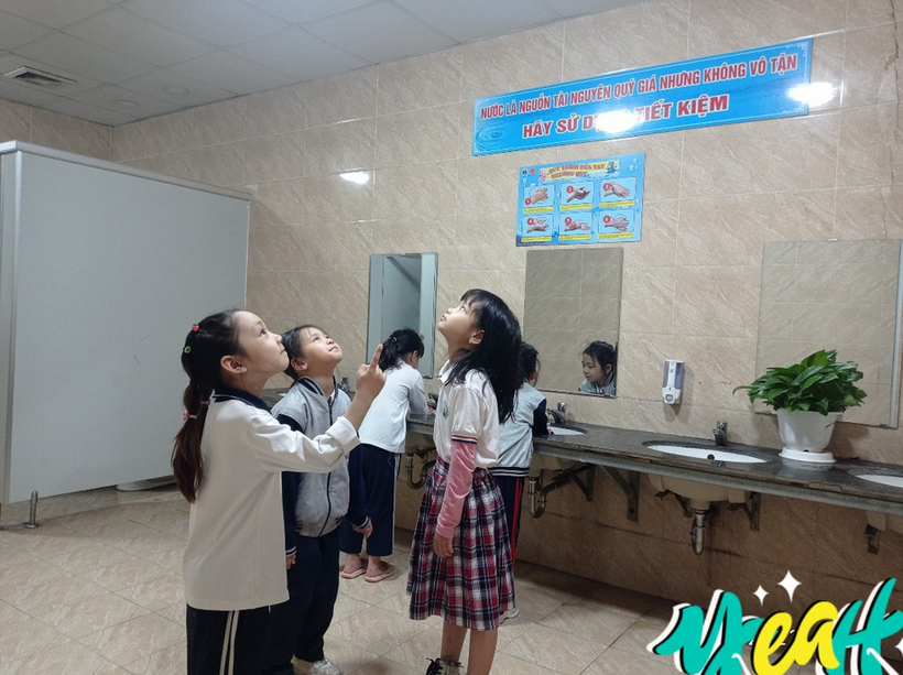 Nhà trường phân công các nhân viên lao công phụ trách từng khu vực, đặc biệt giờ ra chơi học sinh sử dụng nhà vệ sinh đông thì các cô nhân viên túc trực để phối hợp các em giữ gìn nhà vệ sinh, lau dọn kịp thể để luôn khô ráo.