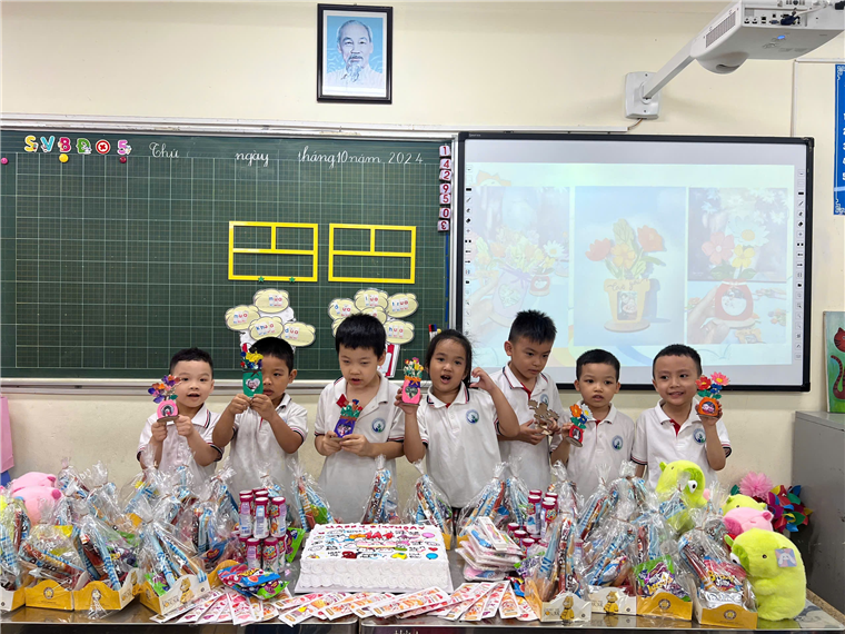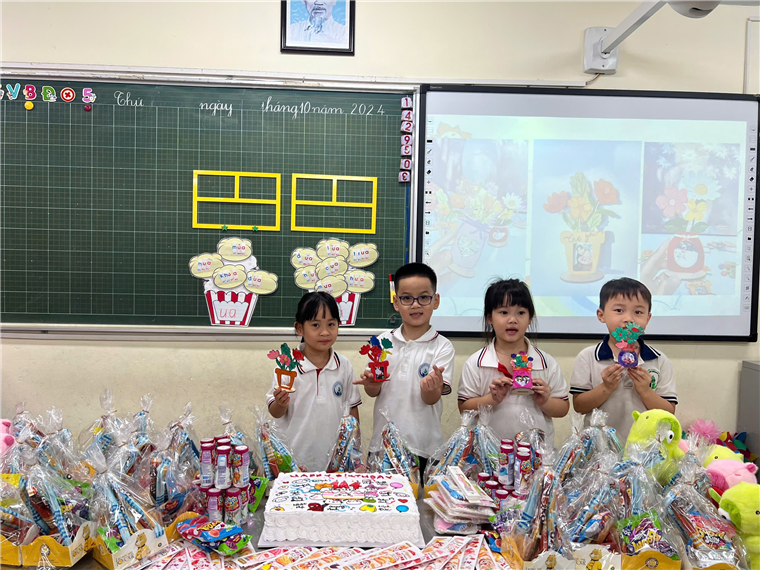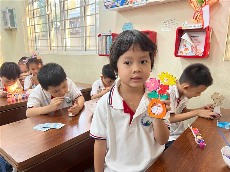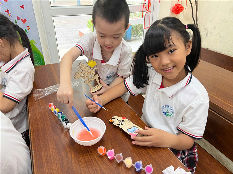 Để chào mừng ngày Phụ nữ Việt Nam, các bạn học sinh lớp 1A4 đã được tổ chức hoạt động tìm hiểu về ngày 20/10 và tự tay trang trí những bình hoa gỗ tặng bà, tặng mẹ.