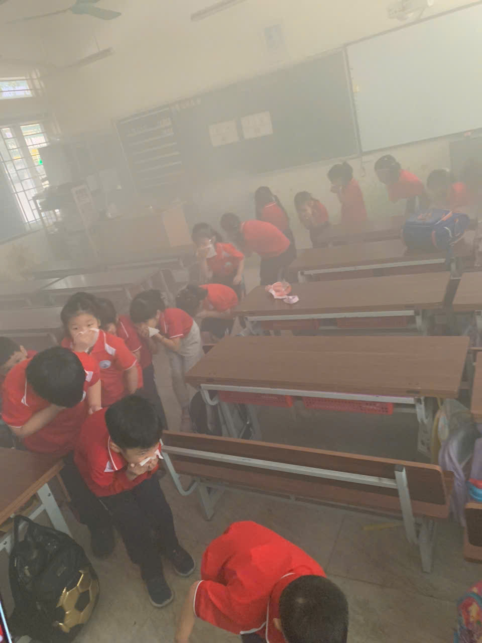 ⁃ Khối 1,2 thực hành tìm lối thoát hiểm khi có cháy trong lớp học;