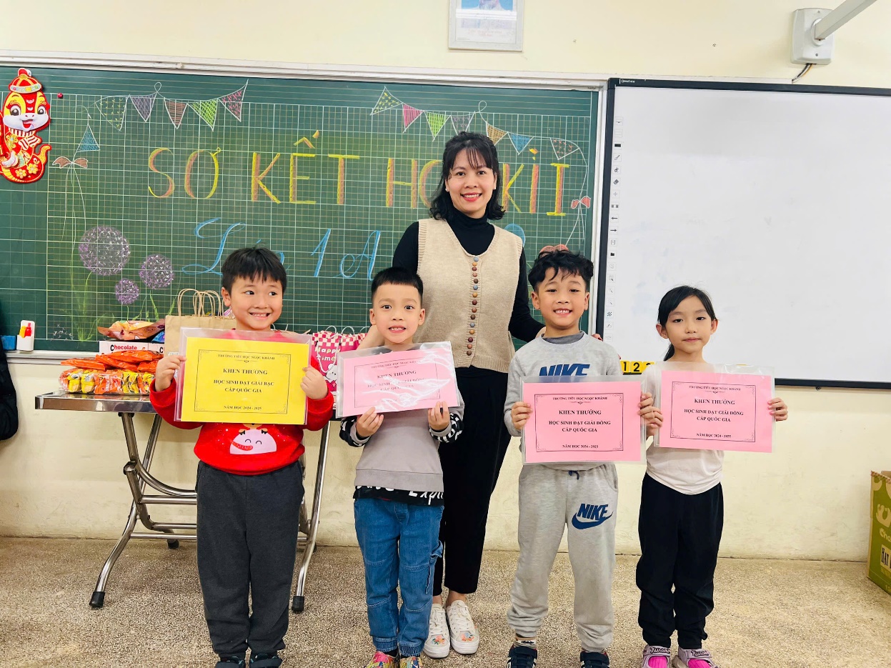 Mùa xuân đã về. Những cánh hoa đào, hoa mai rộn ràng khoe sắc thắm đã tràn ngập khắp phố phường. Hòa trong không khí của những ngày đầu năm 2025, với niềm hân hoan phấn khởi đón chào một mùa xuân mới tràn ngập khắp nơi, cô và trò lớp 1A5 đã tổ chức buổi lễ Sơ kết học kì I năm học 2024- 2025 để cùng đánh giá, khen thưởng những thành tích và nỗ lực của các bạn lớp 1A5 trong thời gian vừa qua.