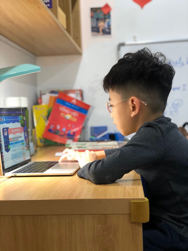Và đây là bạn Tưởng Vũ Lâm nhanh nhẹn, đẹp trai của lớp 1A5. Vũ Lâm rất mạnh dạn, tự tin. Trong giờ học, bạn học tập tích cực lắm.