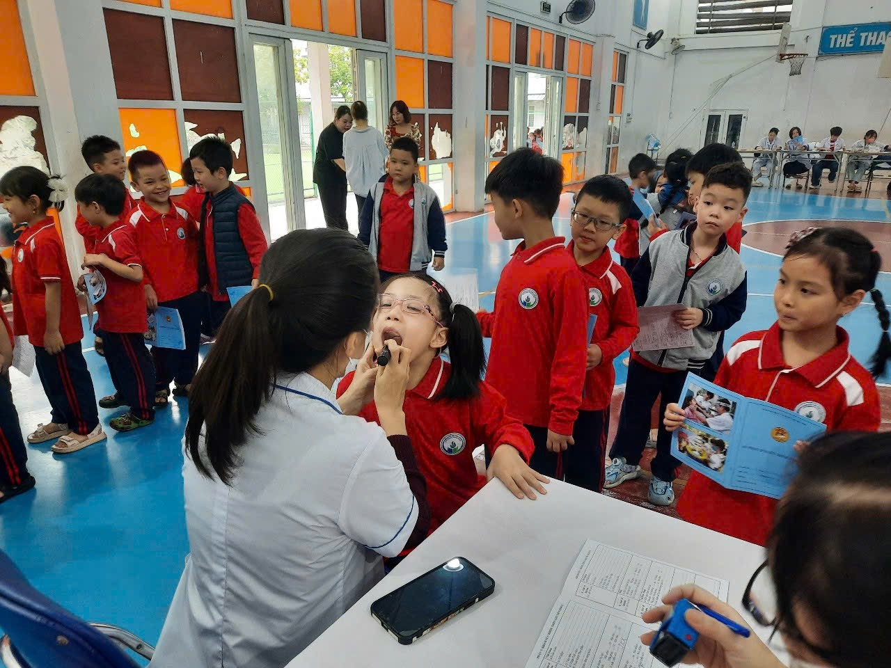Học sinh lớp 1A6 tham gia buổi khám sức khoẻ định kì