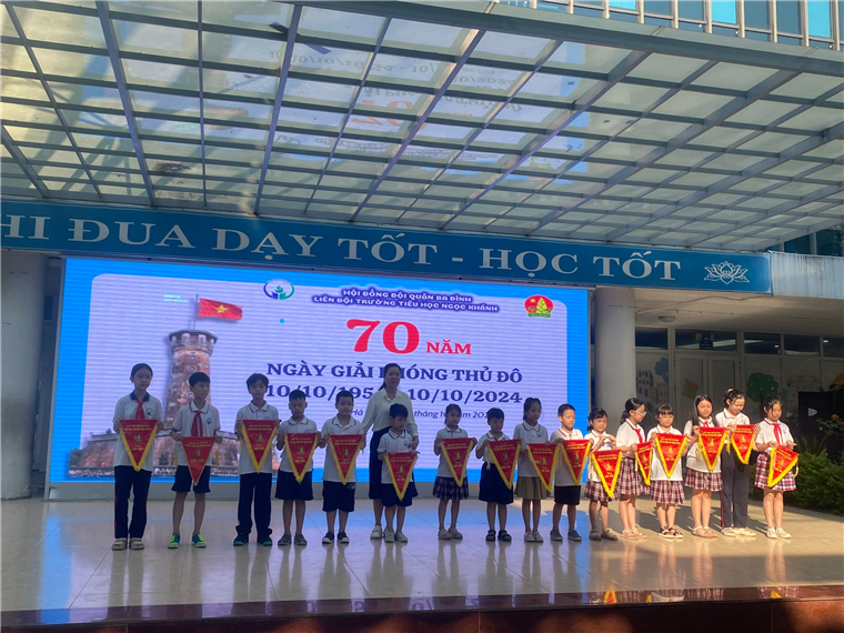 Sau phần nghi lễ là phần Sinh hoạt theo chủ điểm “Chào mừng 70 năm giải phóng thủ đô”.