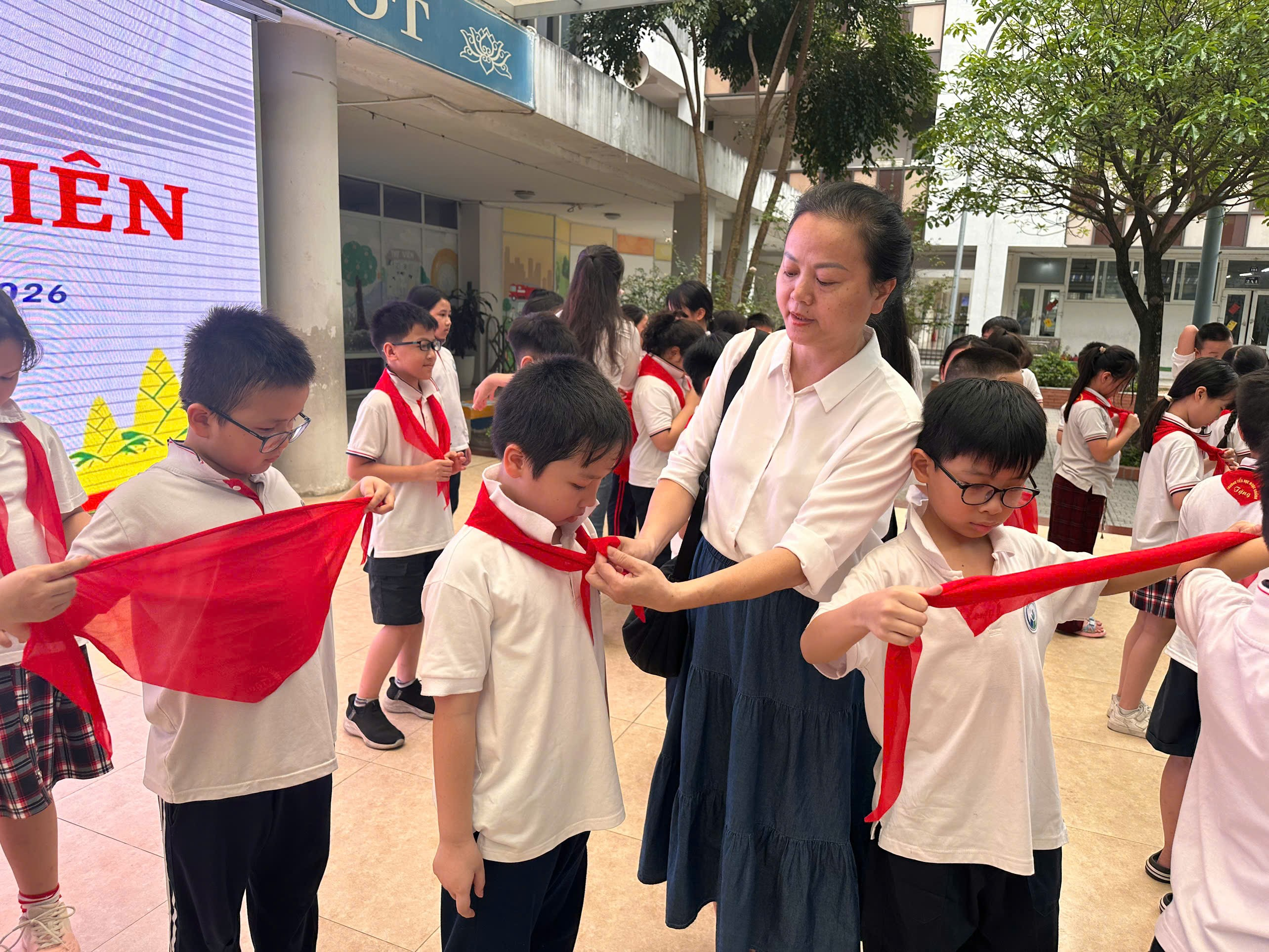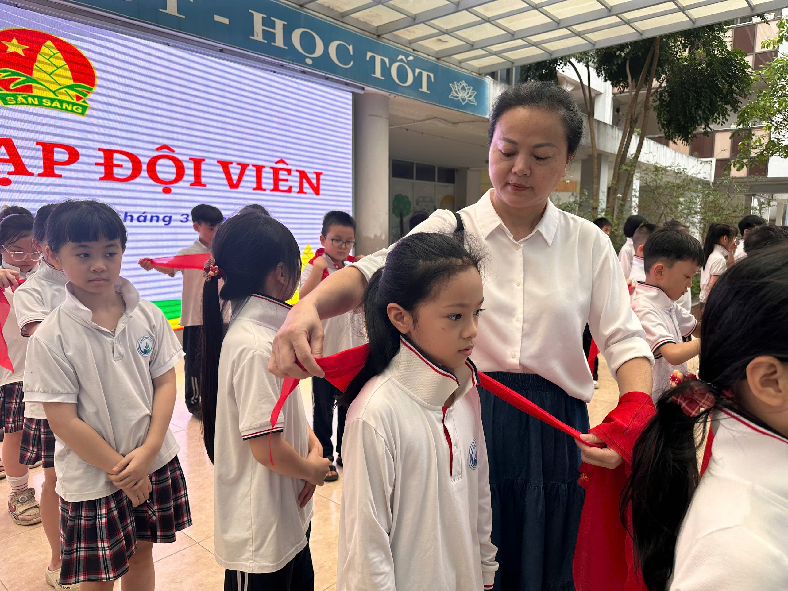 Giây phút các thầy cô giáo và các anh chị phụ trách tự tay trao và thắt chiếc khăn quàng đỏ lên vai các em, những ánh mắt ngây thơ bỗng trở nên chững chạc, rạng rỡ và ánh lên niềm tự hào khôn tả. Lời hứa của người đội viên vang lên dõng dạc giữa sân trường: "Sẵn sàng!" chính là lời cam kết mạnh mẽ nhất của thế hệ măng non Ngọc Khánh.