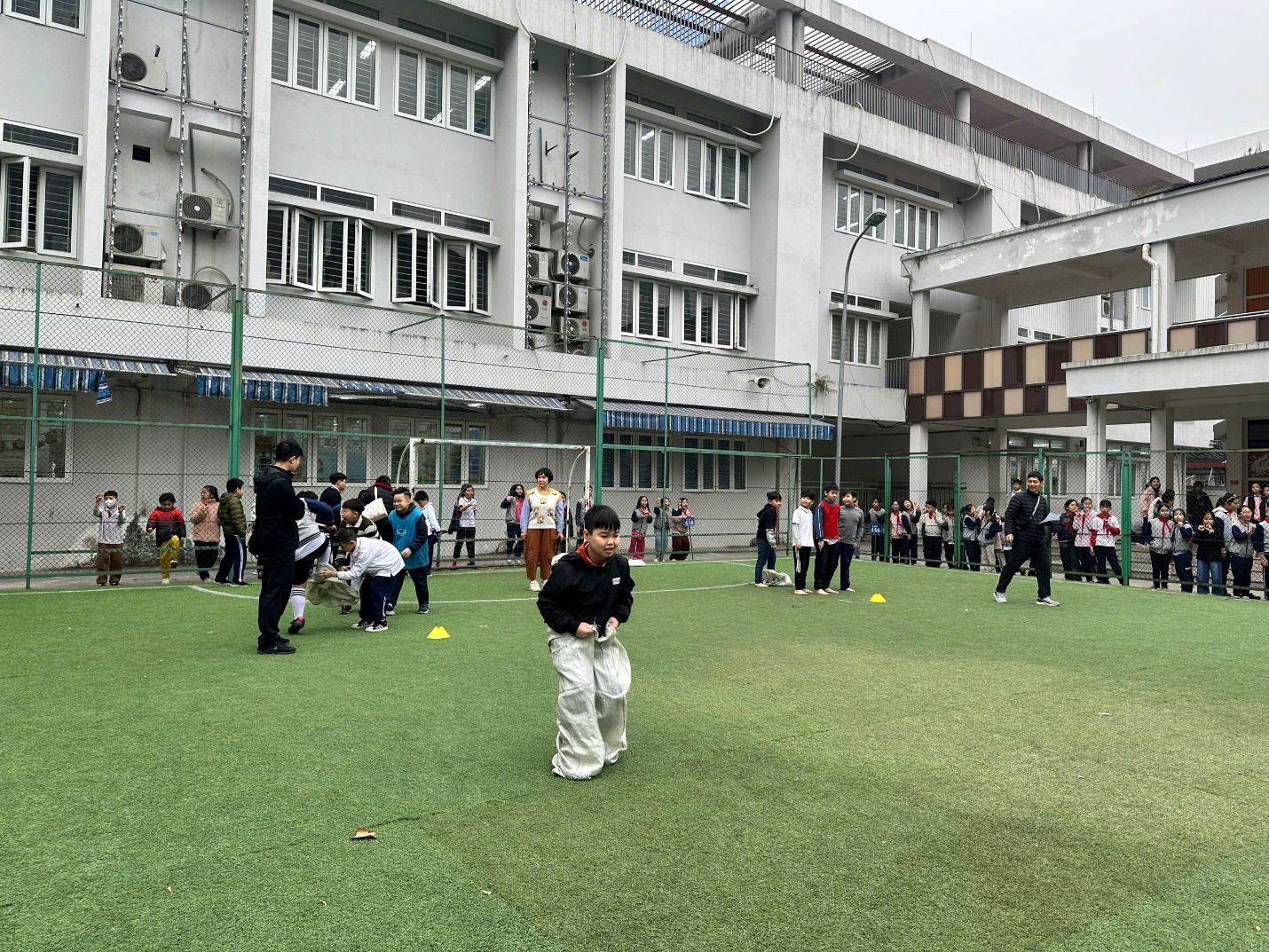 Ngày 30 tháng 12 năm 2024, các em học sinh lớp 4A2 đã hào hứng tập trung tại sân trường để tham gia trò chơi dân gian nhảy bao bố. Trò chơi nhảy bao bố là một trò chơi dân gian phổ biến trong các hoạt động vui chơi, đặc biệt là trong các sự kiện ngoại khóa của các trường học và các lễ hội dân gian. Trò chơi này yêu cầu sự linh hoạt, sự nhanh nhẹn và chiến thuật của người chơi. Các em học sinh chia thành hai đội, tận dụng chiến thuật và sự linh hoạt để chiến thắng đối thủ. Trò chơi này không chỉ giúp các em rèn luyện sự tập trung và sự phối hợp nhóm mà còn thú vị và mang tính giáo dục cao.