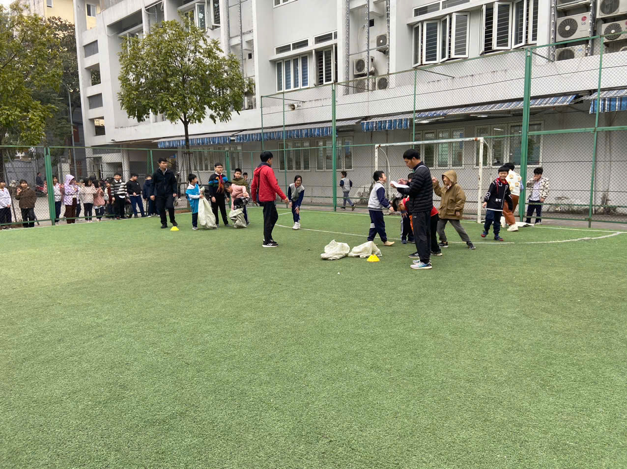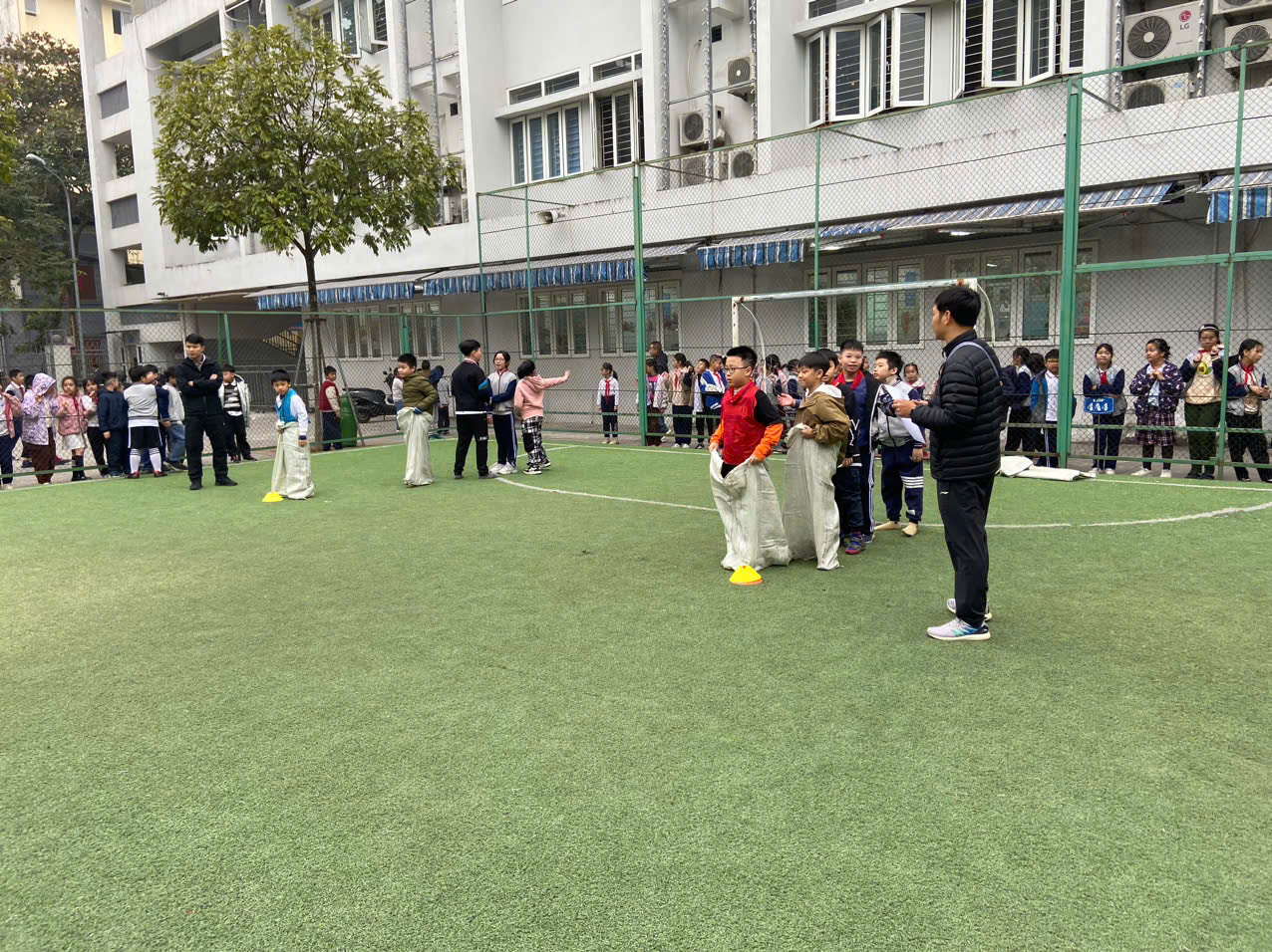 Ngày 30 tháng 12 năm 2024, các em học sinh lớp 4A3 đã hào hứng tập trung tại sân trường để tham gia trò chơi dân gian nhảy bao bố. Trò chơi nhảy bao bố là một trò chơi dân gian phổ biến trong các hoạt động vui chơi, đặc biệt là trong các sự kiện ngoại khóa của các trường học và các lễ hội dân gian. Trò chơi này yêu cầu sự linh hoạt, sự nhanh nhẹn và chiến thuật của người chơi. Các em học sinh chia thành hai đội, tận dụng chiến thuật và sự linh hoạt để chiến thắng đối thủ. Trò chơi này không chỉ giúp các em rèn luyện sự tập trung và sự phối hợp nhóm mà còn thú vị và mang tính giáo dục cao.