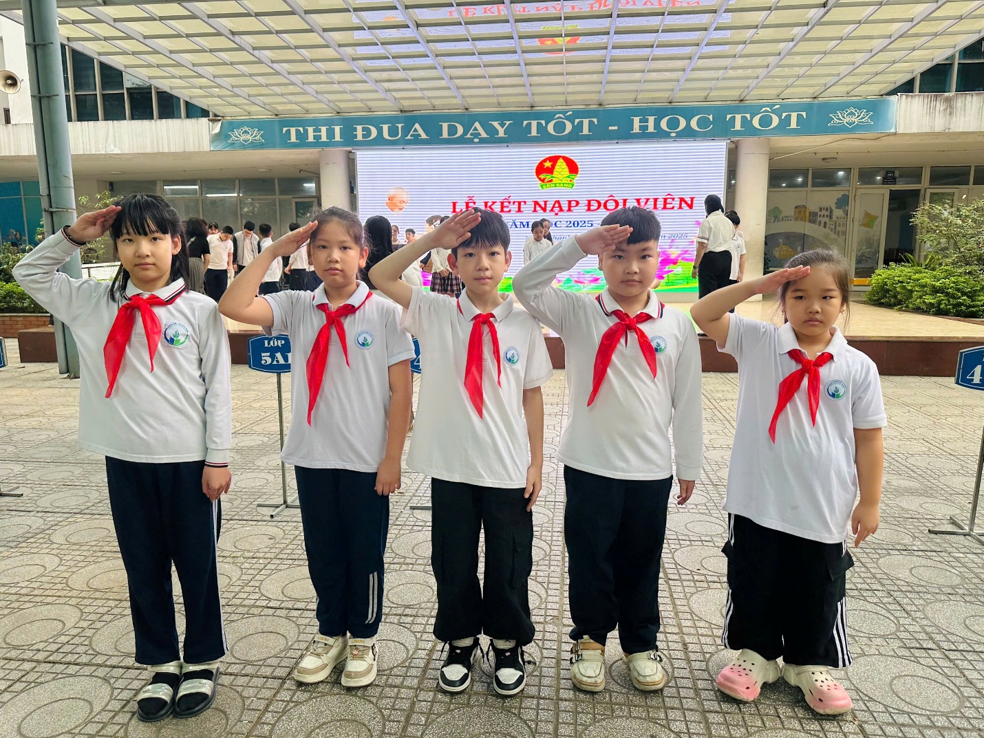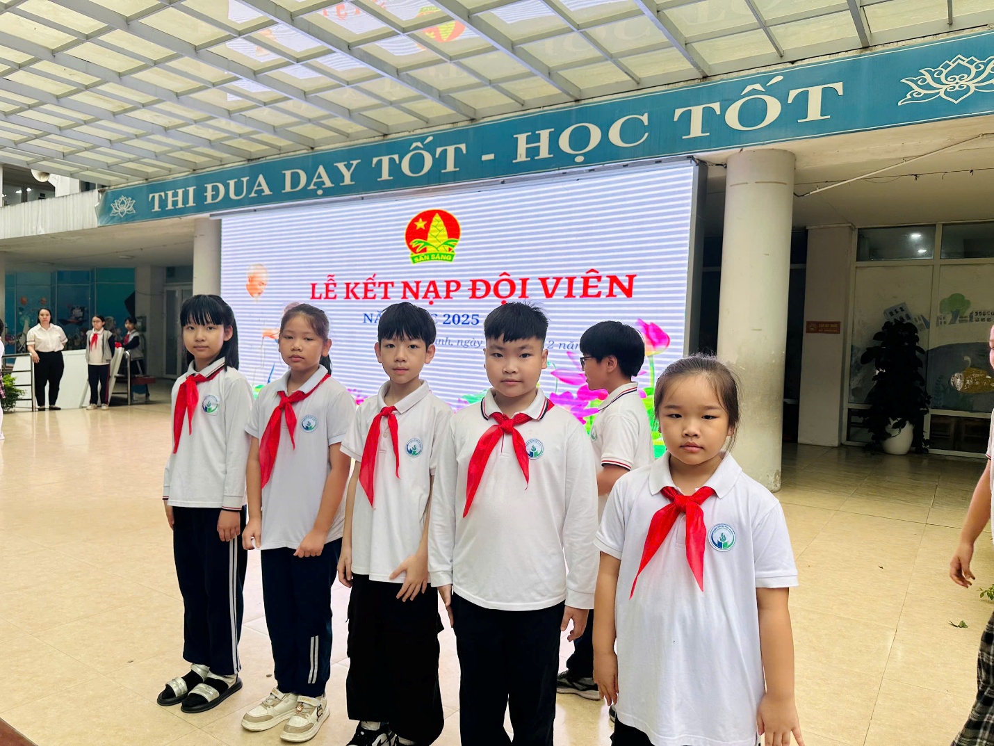 Trong không khí trang nghiêm và ý nghĩa ấy, lớp 4A6 vinh dự có 5 học sinh được kết nạp vào Đội Thiếu niên Tiền phong Hồ Chí Minh: Mộc Quyên, Hải Nam, Thúy An, Khả Linh, Thanh Toàn. Đây đều là những bạn chăm ngoan, học tập tốt và tích cực tham gia các hoạt động của nhà trường. Khoác lên vai chiếc khăn quàng đỏ thắm là niềm tự hào và cũng là động lực để các em tiếp tục phấn đấu, rèn luyện, xứng đáng là con ngoan trò giỏi, cháu ngoan Bác Hồ.