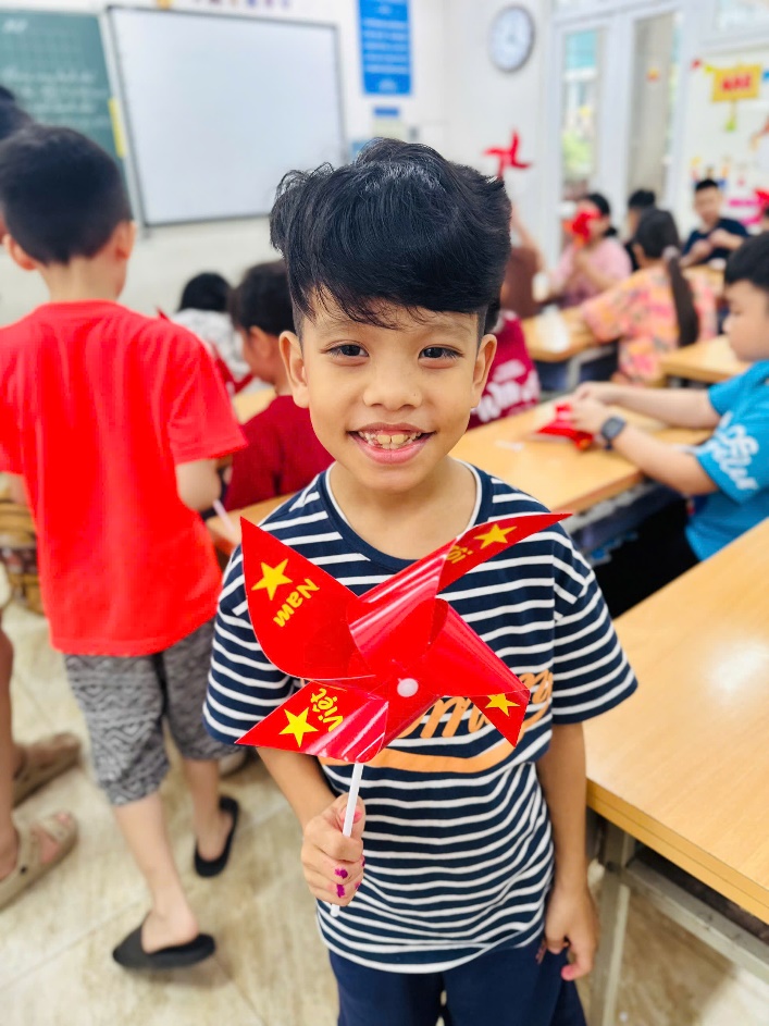 Không dừng lại ở đó, tập thể lớp 4A6 còn cùng nhau thực hiện sản phẩm sáng tạo và chụp ảnh lưu niệm. Hình ảnh thầy cô và các bạn học sinh trong màu áo cờ đỏ sao vàng, tay cầm lá cờ Tổ quốc tung bay rực rỡ đã để lại nhiều cảm xúc đẹp, lan tỏa tinh thần yêu nước và niềm tự hào dân tộc.