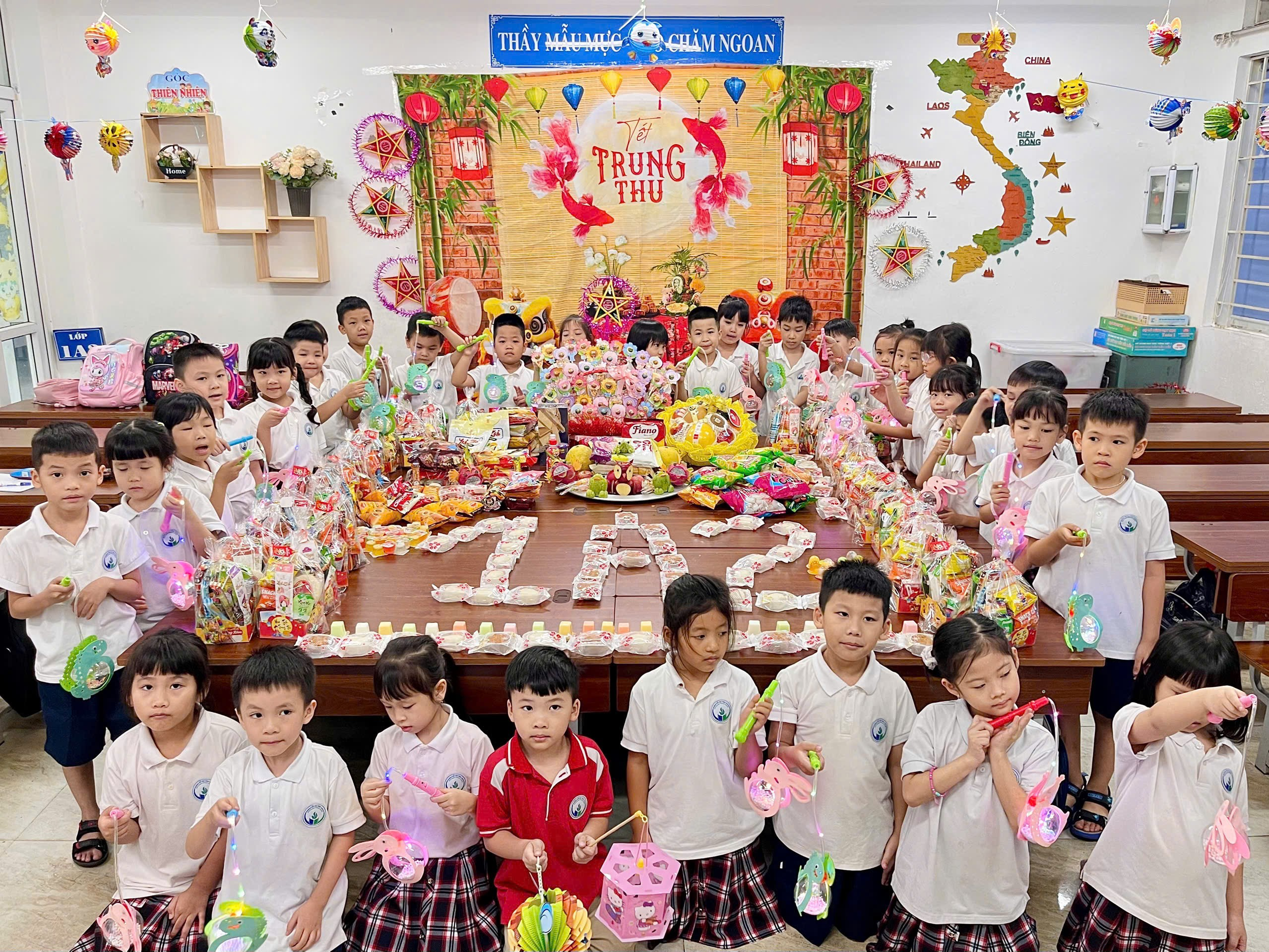Thế là ngày các bạn nhỏ mong đợi nhất cũng đã đến, đó là “ Tết trung thu”. Các con ai cũng náo nức, vui mừng và háo hức được bày cỗ, được rước đèn lồng, được ăn bánh trung thu và được nhận những món quà đầy ý nghĩa. Đặc biệt hơn là trung thu năm nay các con học sinh lớp 1 được đón tết trung thu với các bạn trong lớp, trung thu đầu tiên của năm học đầu tiên ở trường tiểu học.