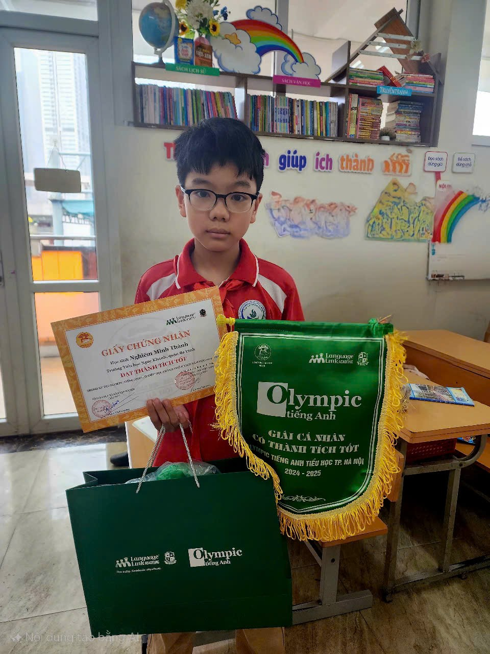 Minh Thành rất thích khám phá, ham thích đọc sách và luôn có những lí luận rất riêng đối với các vấn đề mà cô giáo đưa ra trong các tiết học. Em có niềm say mê đặc biệt với môn Tiếng Anh. Khả năng nghe nói đọc viết – bốn kĩ năng cần có của môn Tiếng Anh em đều đạt mức xuất sắc. Chính vì vậy mà em đã giành được rất nhiều giải thưởng với môn Tiếng Anh này. Vừa qua em vừa tham gia cuộc thi cấp Thành phố môn Tiếng Anh năm học 2024-2025 và đã đạt được kết quả tốt.