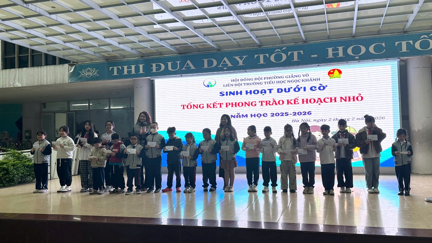 Sáng thứ Hai, ngày 2/2/2026, buổi sinh hoạt dưới cờ của Trường Tiểu học Khánh diễn ra trong không khí trang nghiêm và phấn khởi. Sau phần nghi thức, nhà trường đã tuyên dương và khen thưởng tập thể lớp 4A6 vì đạt danh hiệu Kiện tướng Kế hoạch nhỏ hạng A3 – một thành tích đáng tự hào, thể hiện tinh thần đoàn kết và ý thức bảo vệ môi trường của học sinh.