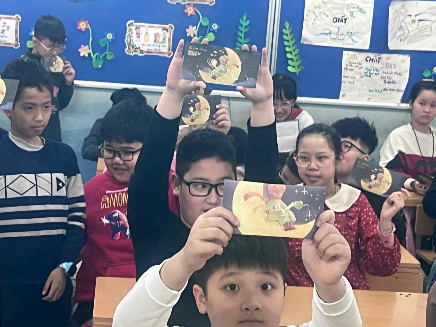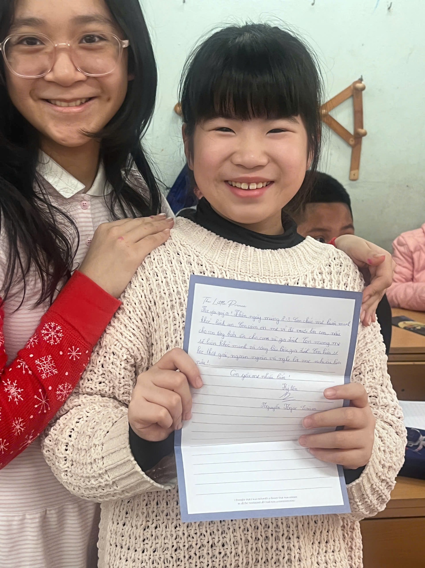 Một trong những hoạt động ý nghĩa nhất của buổi sinh hoạt là phần viết lời chúc vào bưu thiếp. Mỗi bạn học sinh đã tự tay viết những lời chúc tốt đẹp nhất, những lời tri ân chân thành dành tặng bà, tặng mẹ... Những tấm bưu thiếp xinh xắn chứa đựng biết bao tình cảm yêu thương, kính trọng của các em đã khiến không ít người xúc động.