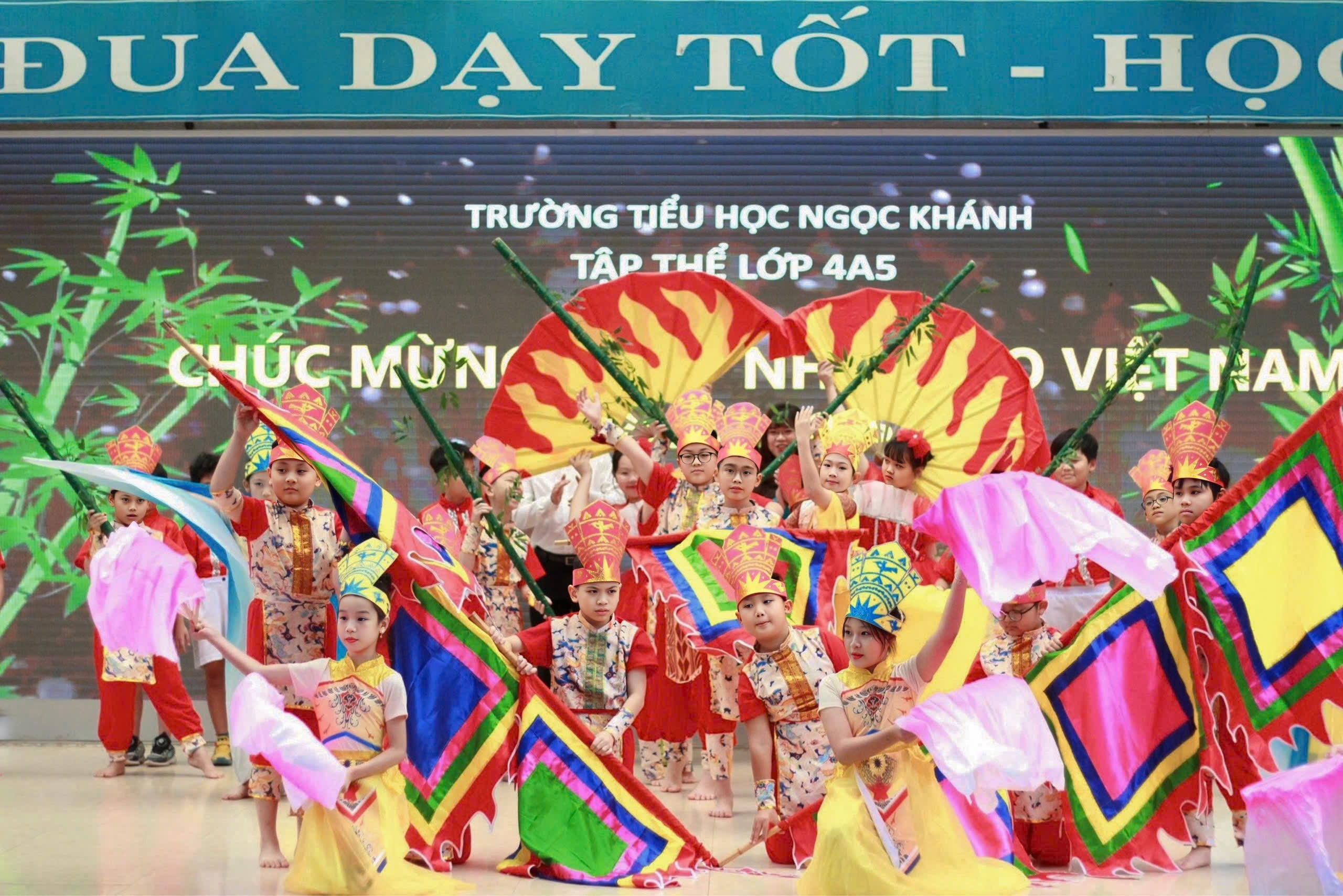 Hòa trong không khí tri ân đầy ý nghĩa của Ngày Nhà giáo Việt Nam 20/11, tập thể lớp 4A5 – Trường Tiểu học Ngọc Khánh, đã mang đến một tiết mục đặc biệt, để lại nhiều cảm xúc sâu lắng và tự hào. Nổi bật nhất trong chương trình là phần biểu diễn ca – múa tập thể “Huyền Sử Âu Lạc” với sự tham gia của phụ huynh và các con học sinh, tạo nên một khoảnh khắc vô cùng rực rỡ và thiêng liêng.