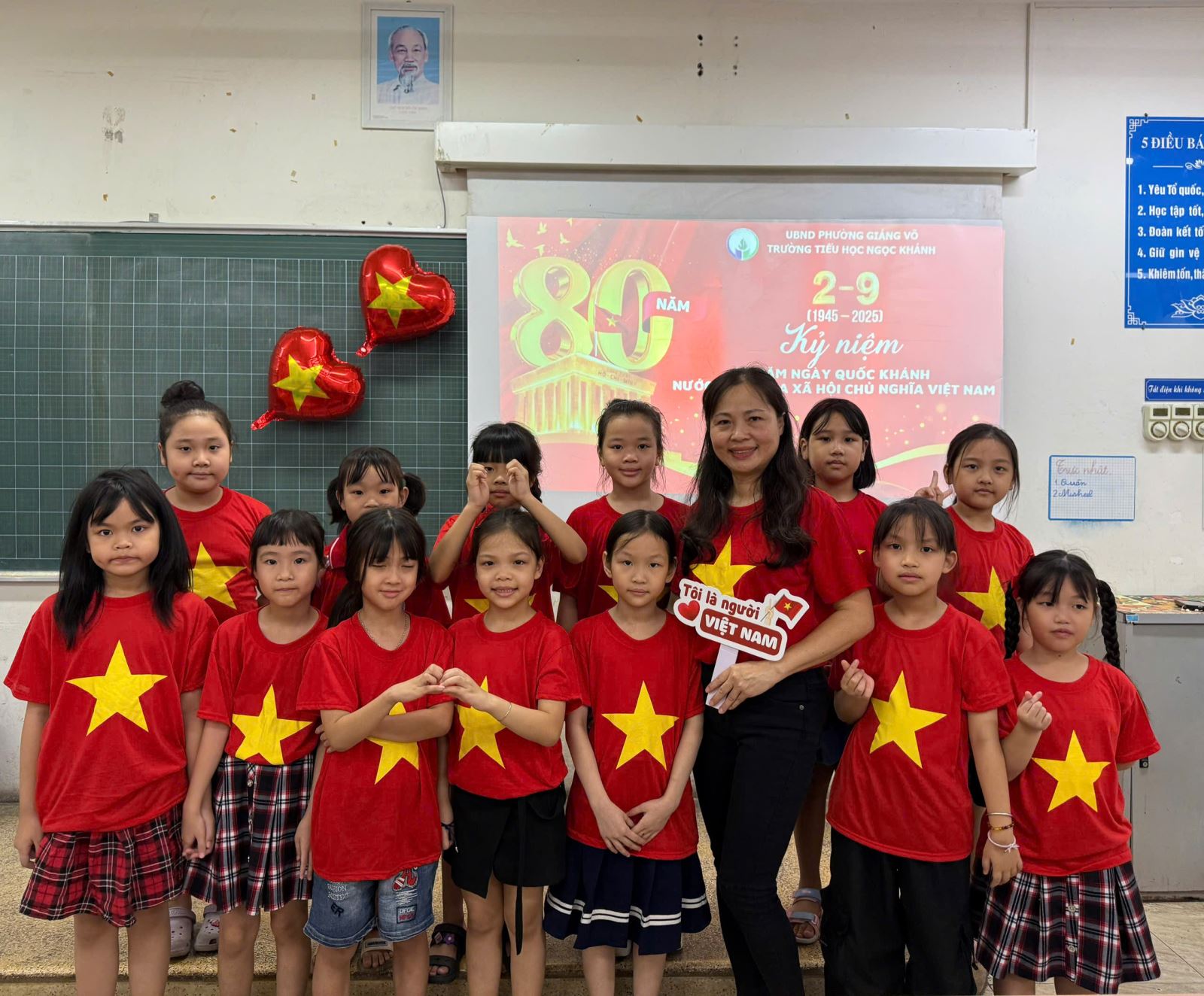 Trong không khí tưng bừng kỉ niệm 80 năm Quốc khánh 2/9, thầy và trò trường Tiểu học Ngọc Khánh đã tổ chức nhiều hoạt động ý nghĩa để bày tỏ tình yêu quê hương, đất nước. Các lớp học rực rỡ sắc màu cờ hoa, các thầy cô giáo và các em học sinh đồng loạt khoác trên mình chiếc áo màu đỏ sao vàng thể hiện niềm tự hào và sự háo hức chào đón ngày lễ trọng đại của dân tộc. Ngày Quốc khánh 2/9 luôn là dấu mốc thiêng liêng trong trái tim mỗi người dân Việt Nam, và với học sinh lớp 3A2, Trường Tiểu học Ngọc Khánh, ngày lễ ấy càng trở nên ý nghĩa hơn bao giờ hết.