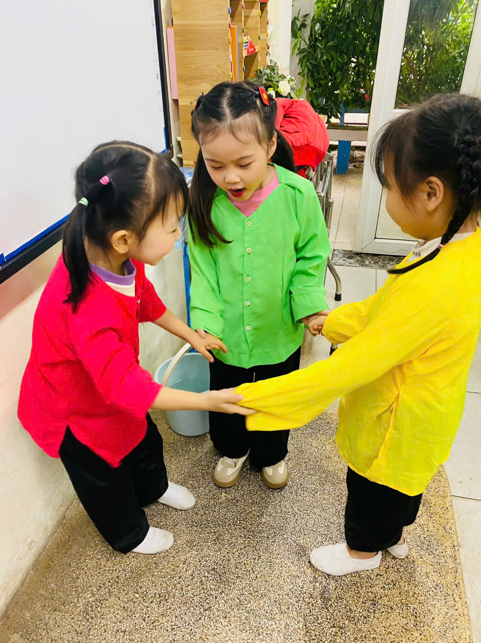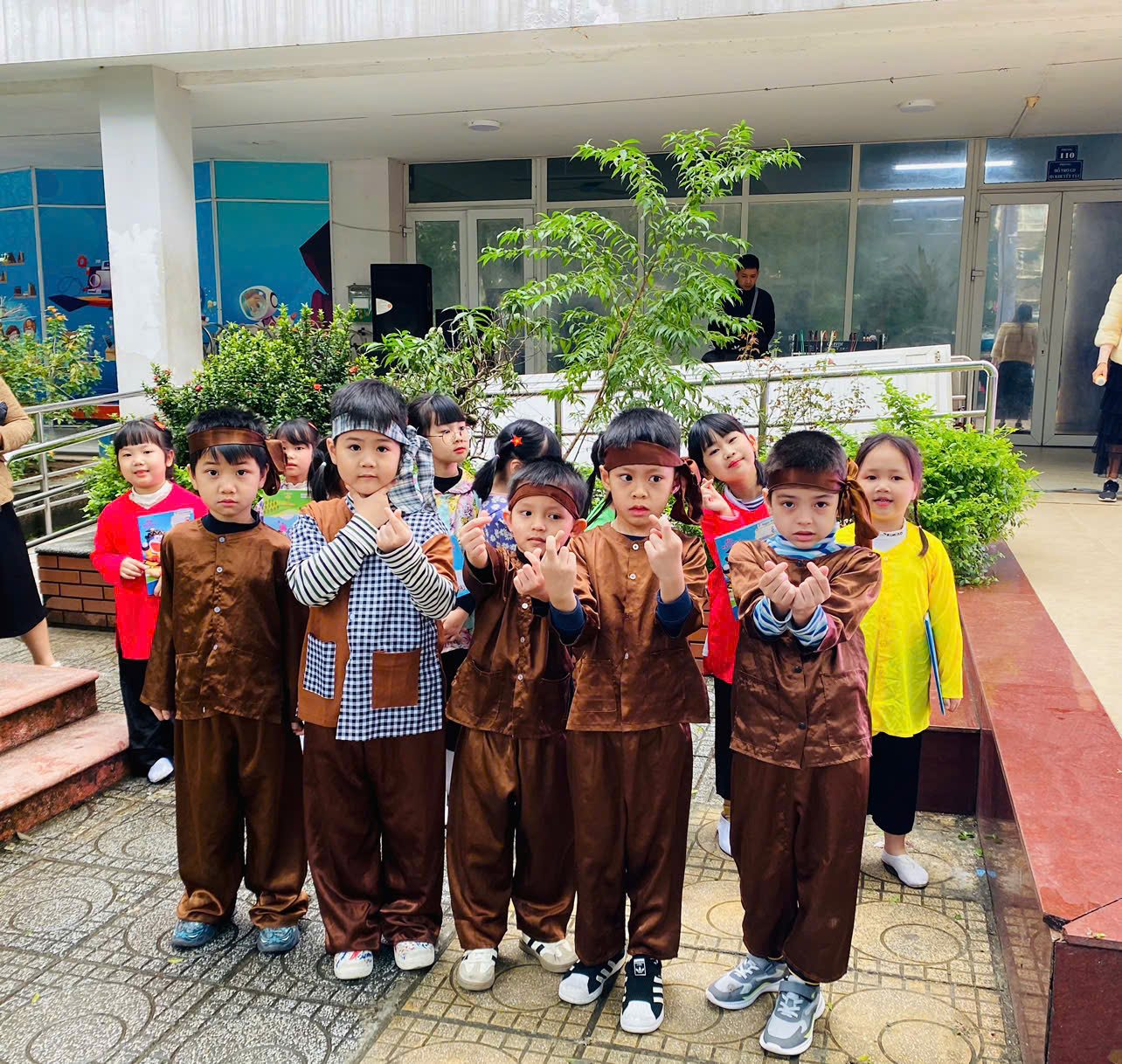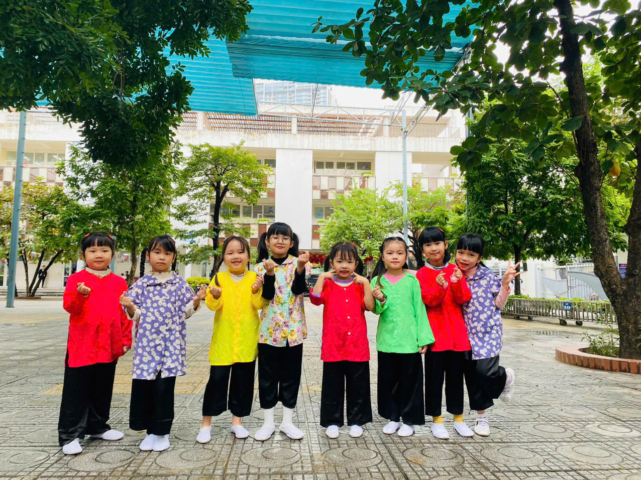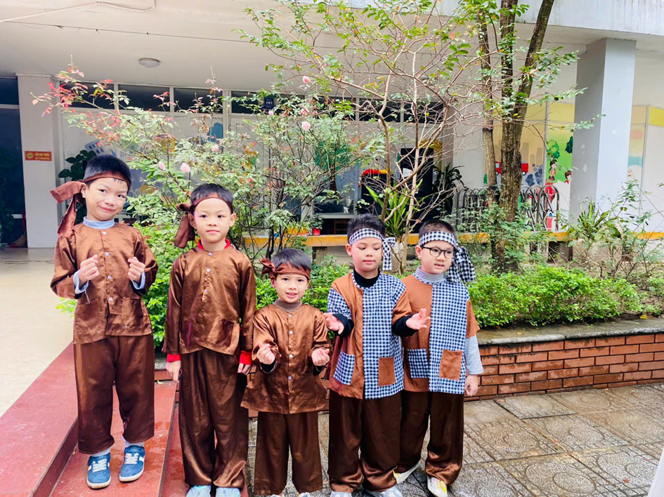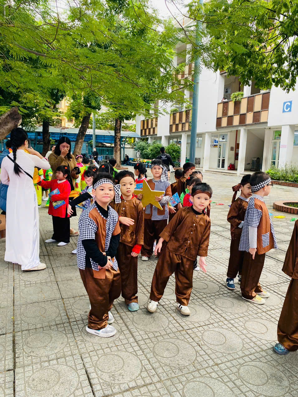 Bên cạnh đó, tập thể học sinh đã chuẩn bị một chương trình văn nghệ sôi nổi với các tiết mục múa hát đầy màu sắc. Trong trang phục truyền thống, các em tự tin biểu diễn trên sân khấu, mang đến không khí vui tươi và ấm áp. Các tiết mục được dàn dựng công phu đã thu hút sự cổ vũ nhiệt tình từ thầy cô và bạn bè.
